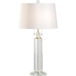 Ideal for formal entryway, living area or dining rooms, Catania Lamp is both elegant and functional. A series of clear crystal rods surround the column and are highlighted with antique brass details. The off-white linen shade and cylindrical finial add the finishing touch to the sophisticated design.