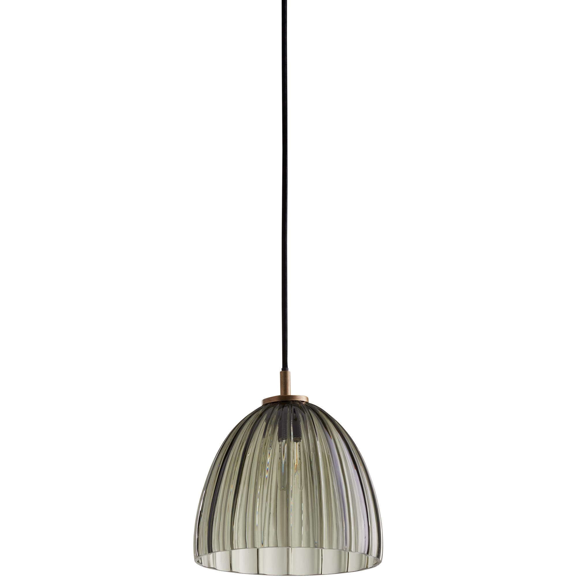 The Caterina Single Pendant in Smoke exudes sleek sophistication with its smoky gray hue and elegant silhouette. Handcrafted in Italy from mouth-blown glass, the fluted dome design subtly reflects light while adding depth and texture.