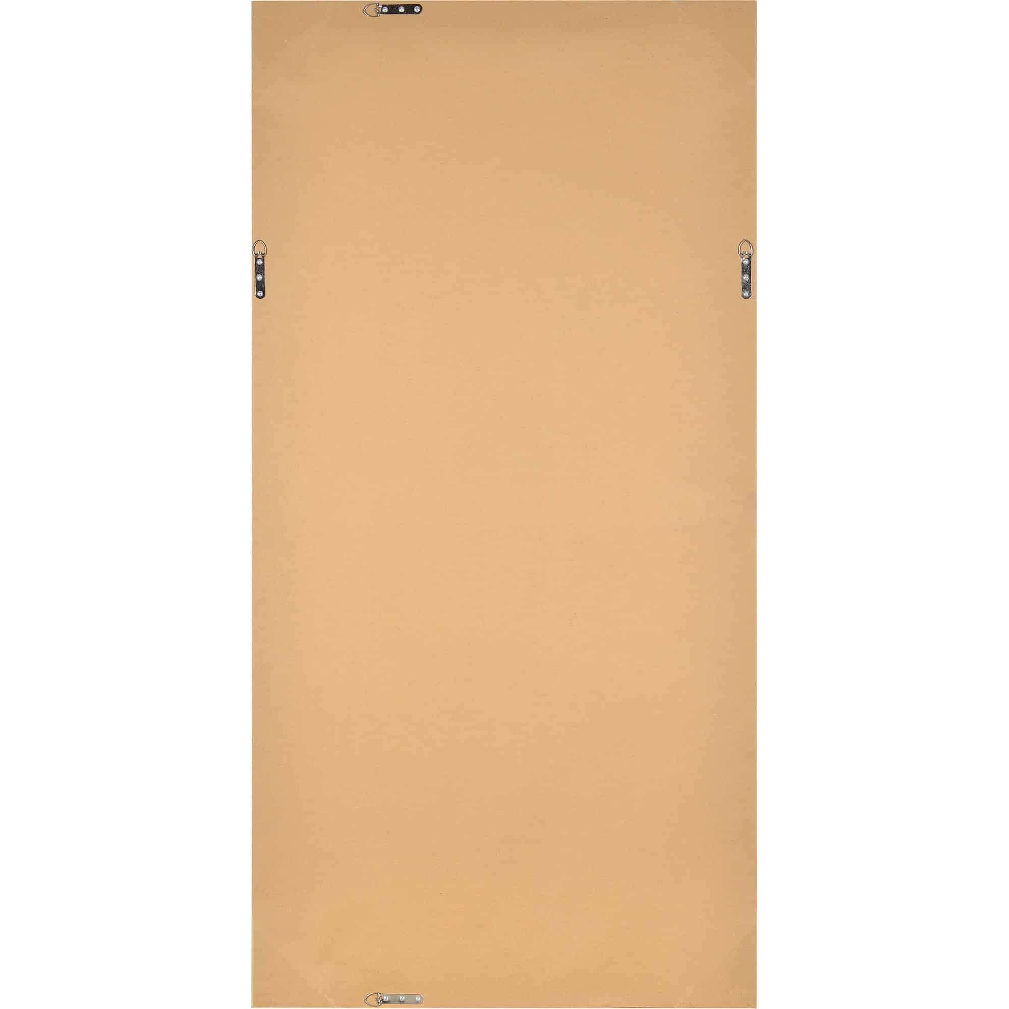 While its size of 30 by 60 inches lends itself well to capture passersby in their full form, it can also be arranged horizontally to capture and reflect an interior. Hanging within the mid-century modern space, its antique gold frame provides warmth and glamor to the room. When paired with rich jewel tones and vivid colours, the ability to shine is enriched.