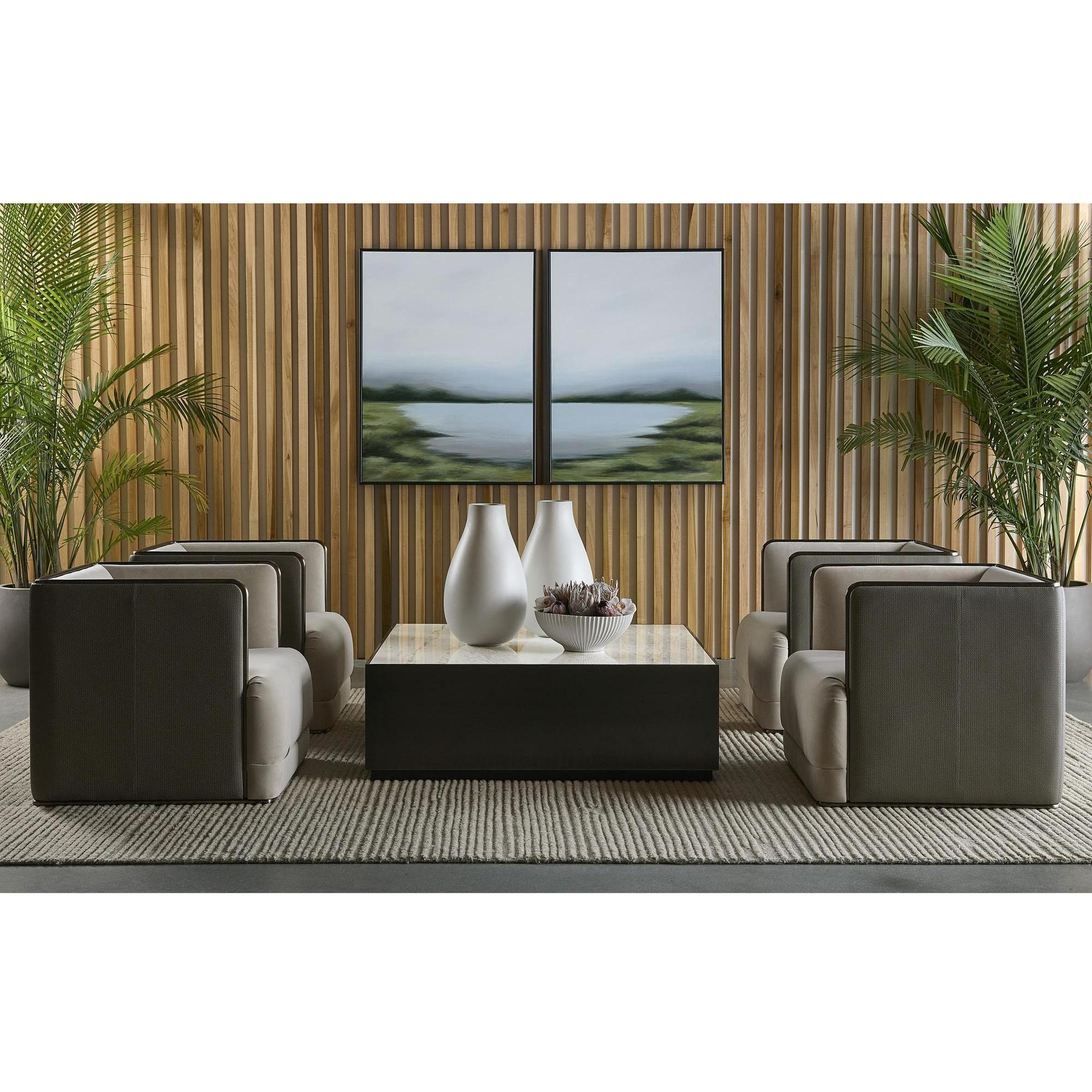 This large, stylish coffee table exudes classic elegance. The unique white marble top is framed with a stunning brushed antique silver base. Suitable for commercial and residential environments. As marble is a natural material, unique veining, pitting, fissures, micro-cracks and colour variations are all characteristics that add to the uniqueness and beauty of each piece.