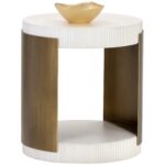 The Cavette end table from combines old world influence with feminine flair. Features a ridged white concrete top and base with a brass steel frame.