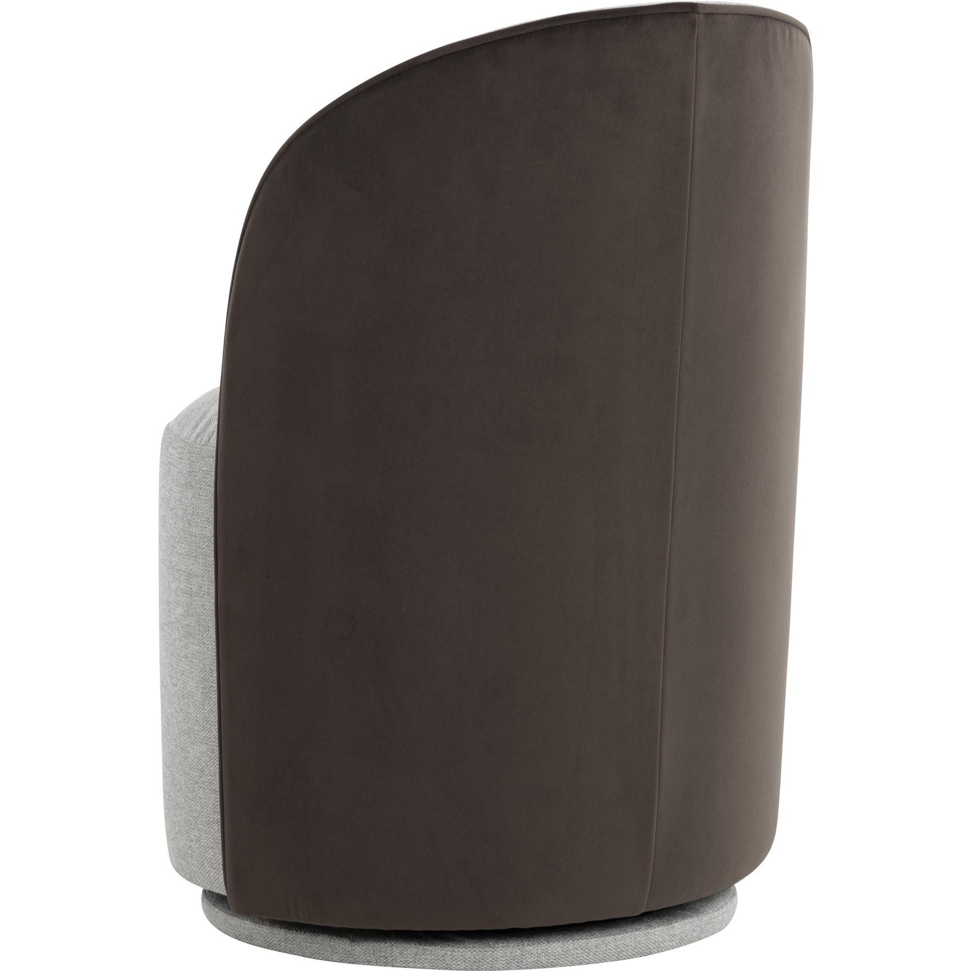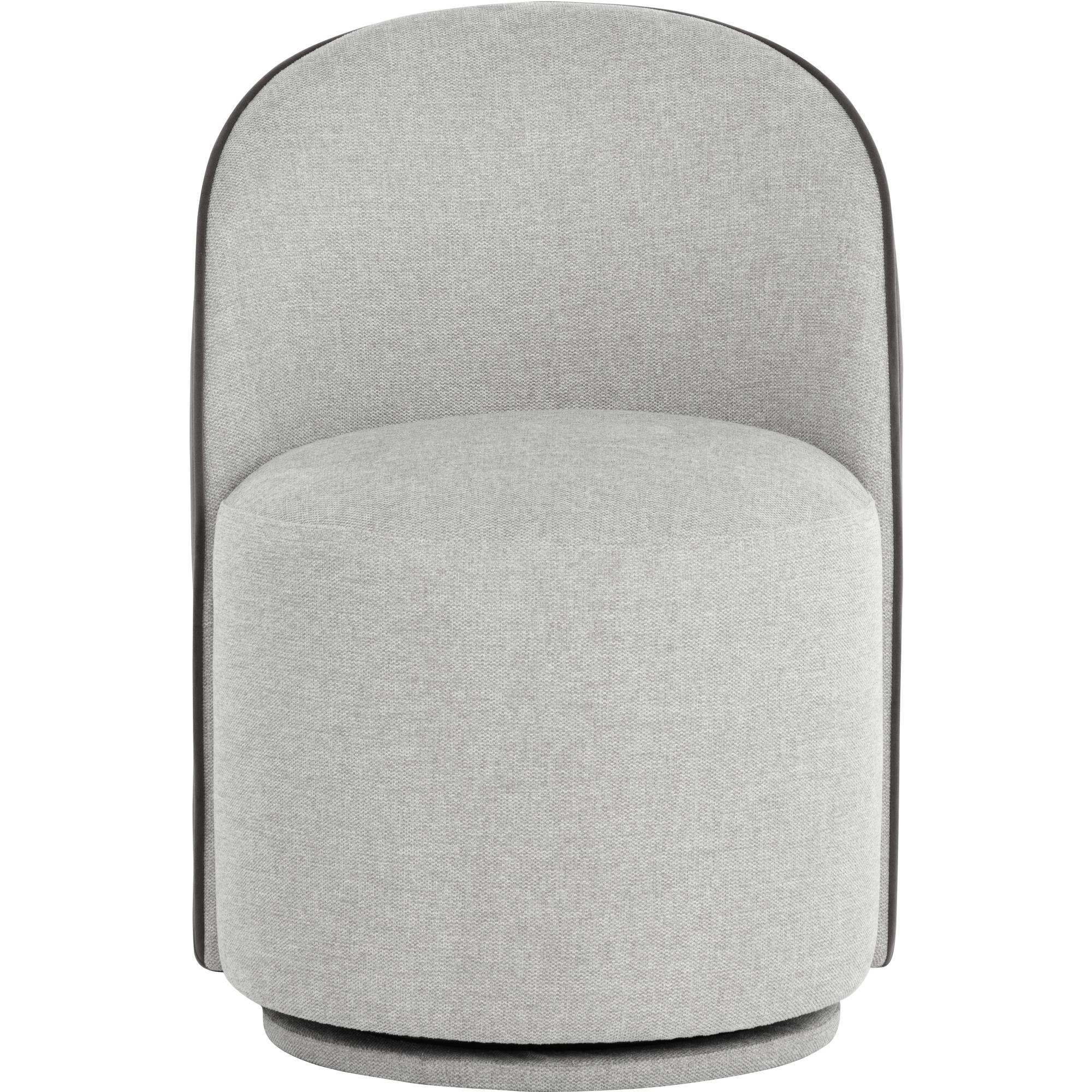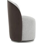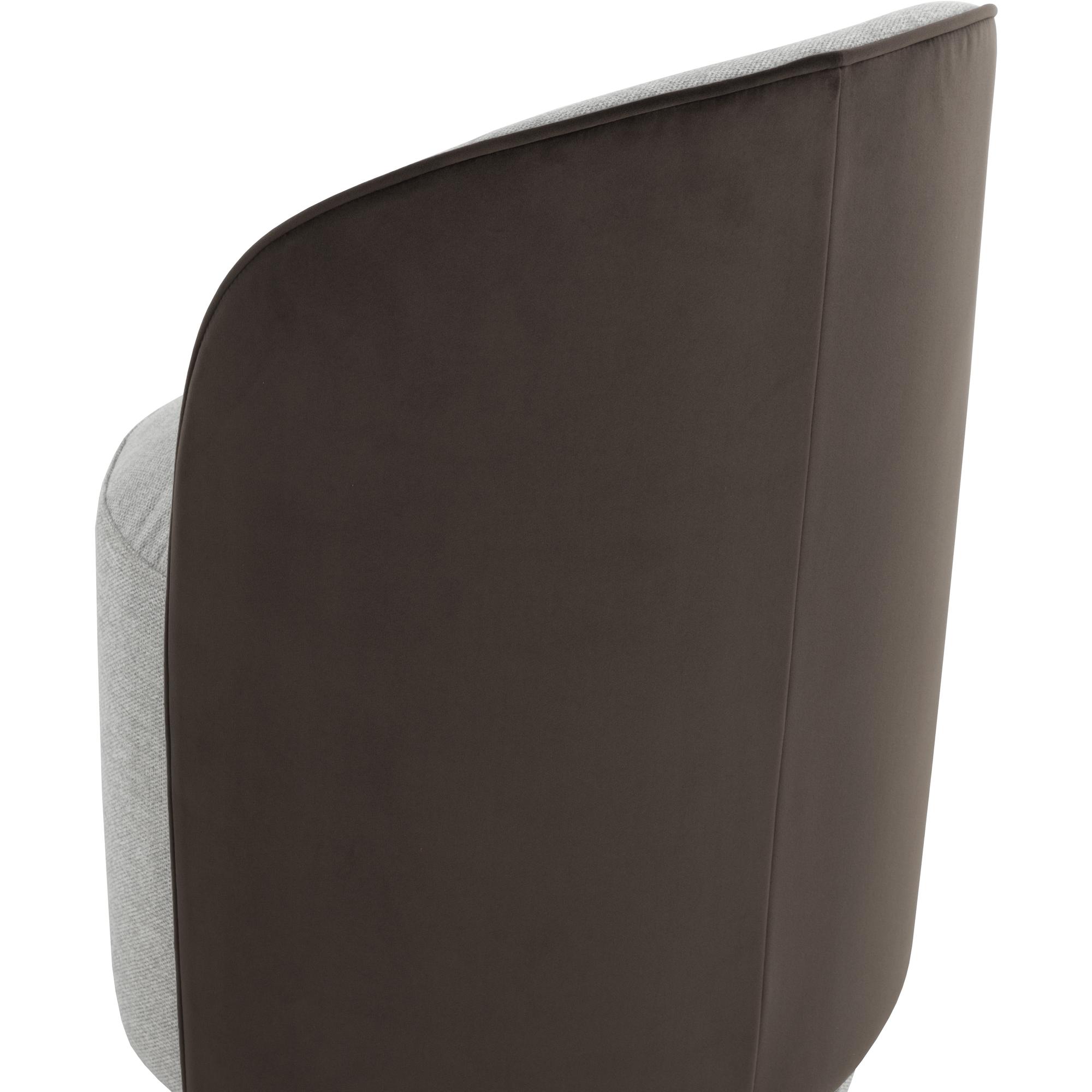 The Cavoli Swivel Dining Chair is distinguished by its curved silhouette. Fully upholstered in belfast heather grey and meg ash fabrics for a contrasting look.
