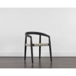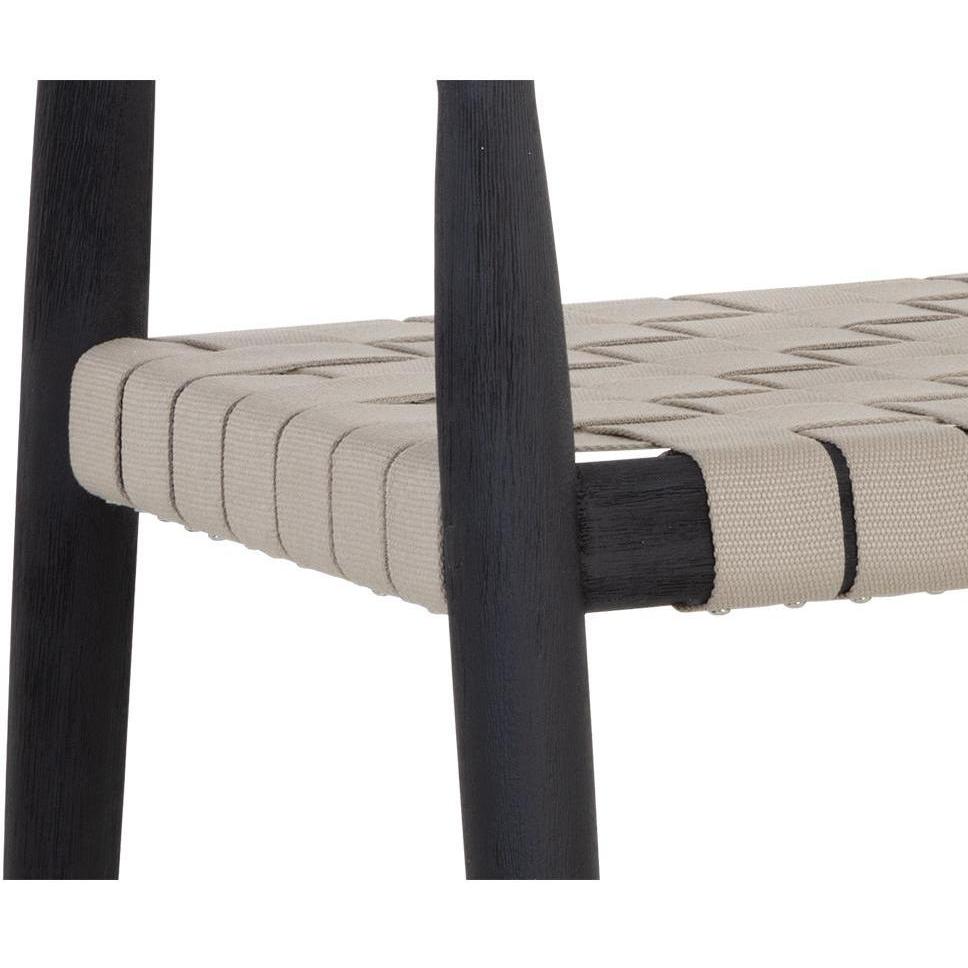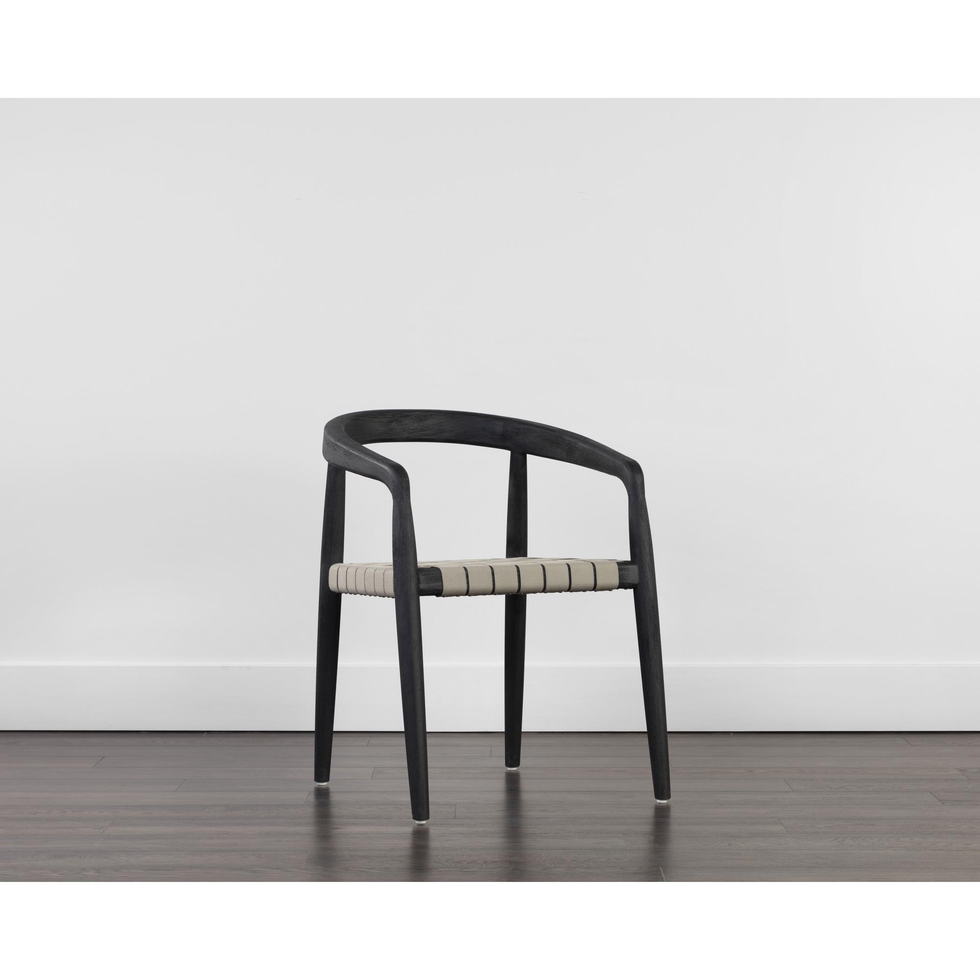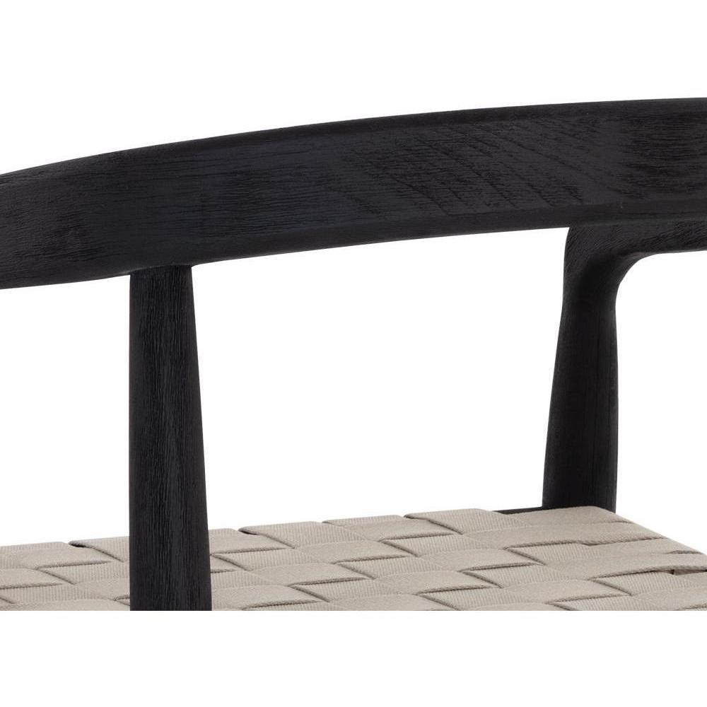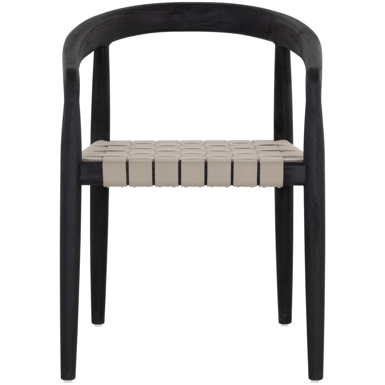 Contrasting textures with impressive details elevate this stylish dining armchair from the Outdoor by SUNPAN collection. The seat is made with Italian all-weather strap which is constructed from 100% recyclable polypropylene fiber for long lasting durability and comfort. Completed with a solid, charcoal-coloured teak wood frame. Suitable for indoor and covered outdoor spaces.
