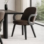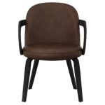The wrap-around frame of this chair looks like it’s reaching out to give you a warm embrace. Accept the invitation and take a seat on this comfortable beauty. The gorgeous combination of the dark brown, vintage faux leather with the dark walnut bentwood frame and legs rings a modern touch to this mid-century style. Will match well with a variety of dining table styles and colours in formal or casual spaces.
