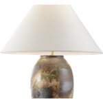 The Chaiaki Table Lamp, part of the Shiga collection, is hand turned with special local sandy clay from the bed of Lake Biwa creating this unique, durable artful lamp completed with cloth wiring and a refined rolled-edge linen shade. Made in Japan.