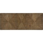 Finish: The Sorrel finish is features oak veneers in a warm brown finish. Unique hand-hammered metal accents in a forged pewter finish add to the contemporary style. Distressing includes sandblasting, wirebrushings, worm holes, and rock distressing.