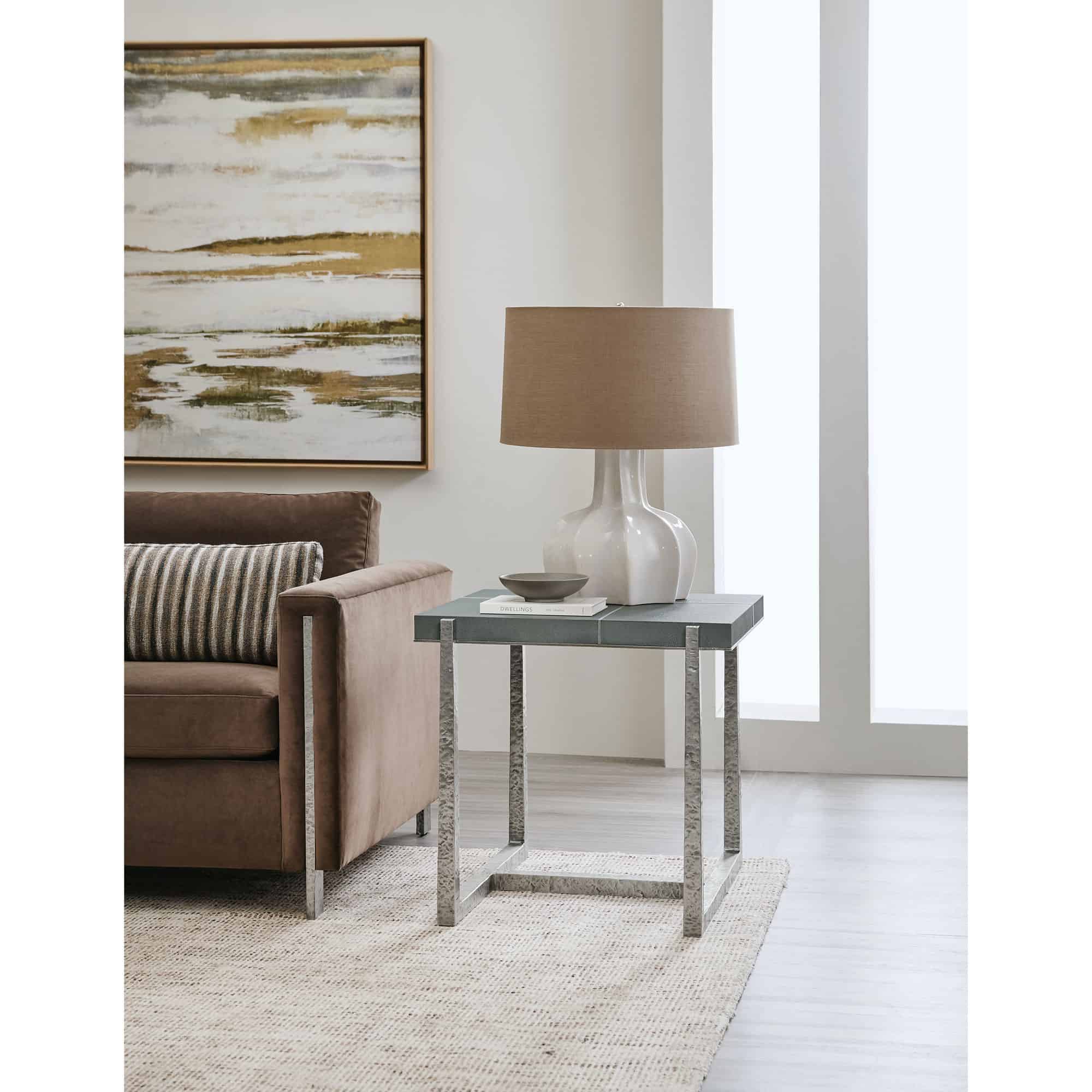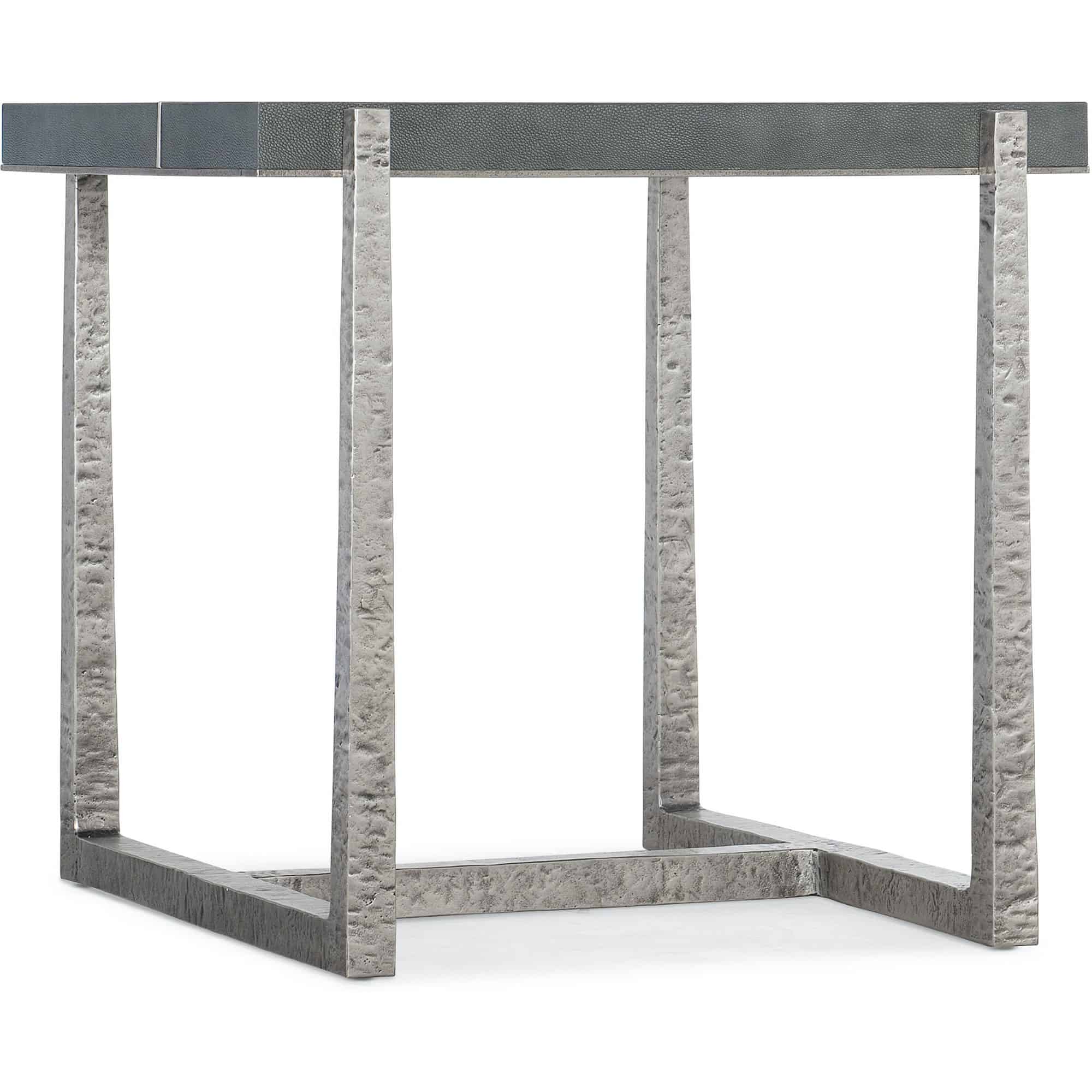 - Finish: Unique hand-hammered forged pewter finished metal with gray faux shagreen top