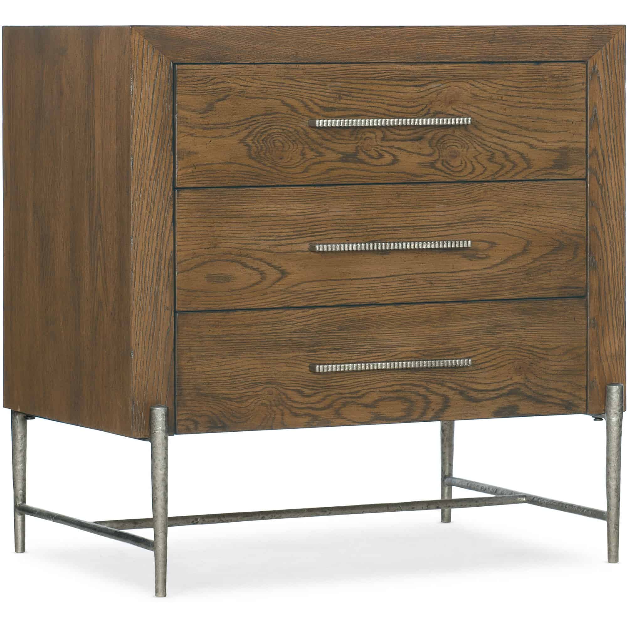 Finish: The Sorrel finish is features oak veneers in a warm brown finish. Custom hardware and unique hand-hammered metal accents in a forged pewter finish add to the contemporary style. Distressing includes sandblasting, wirebrushings, worm holes, and rock distressing.
