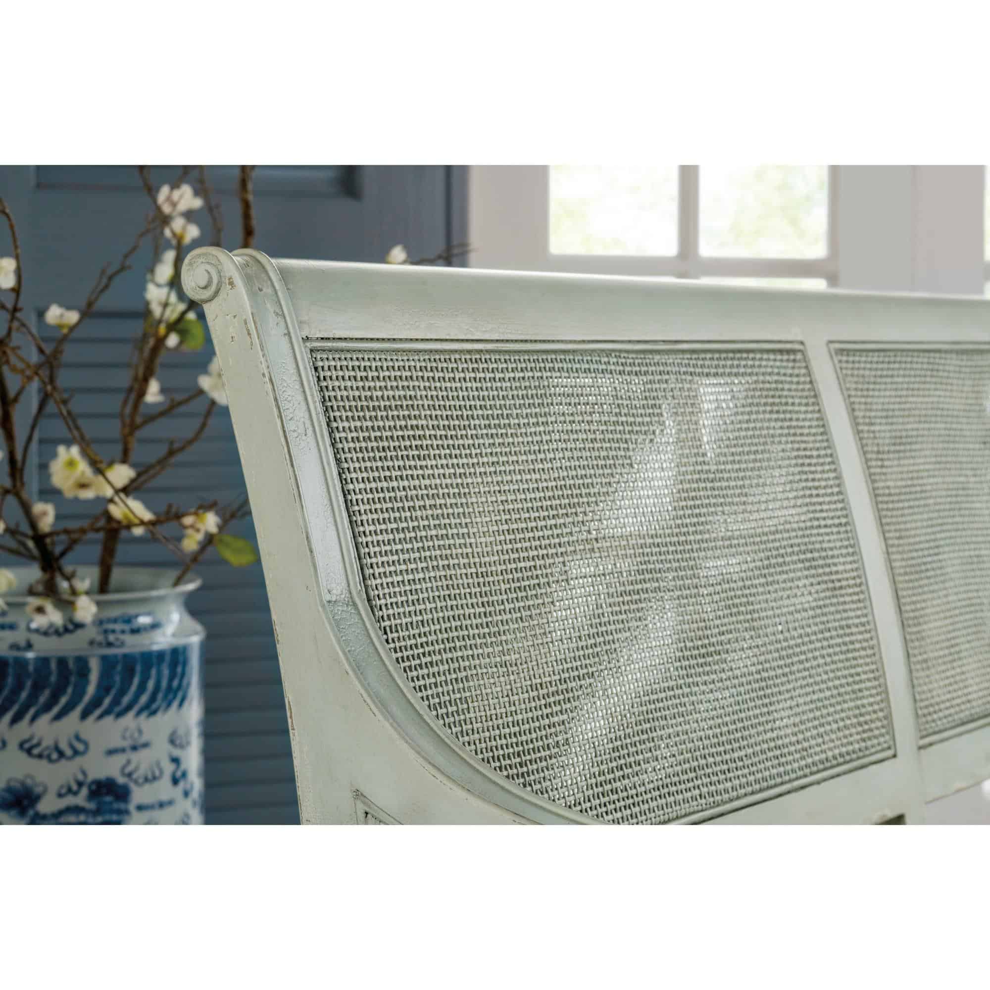 Finish: Haint Blue: A soft blue color which can be found on the ceilings of porches and entryways, window shutters and doors. Inspired by Gullah folklore brought to the American South more than 200 years ago to keep “haints” or spirits, which could not cross water, from entering the home or dwelling.