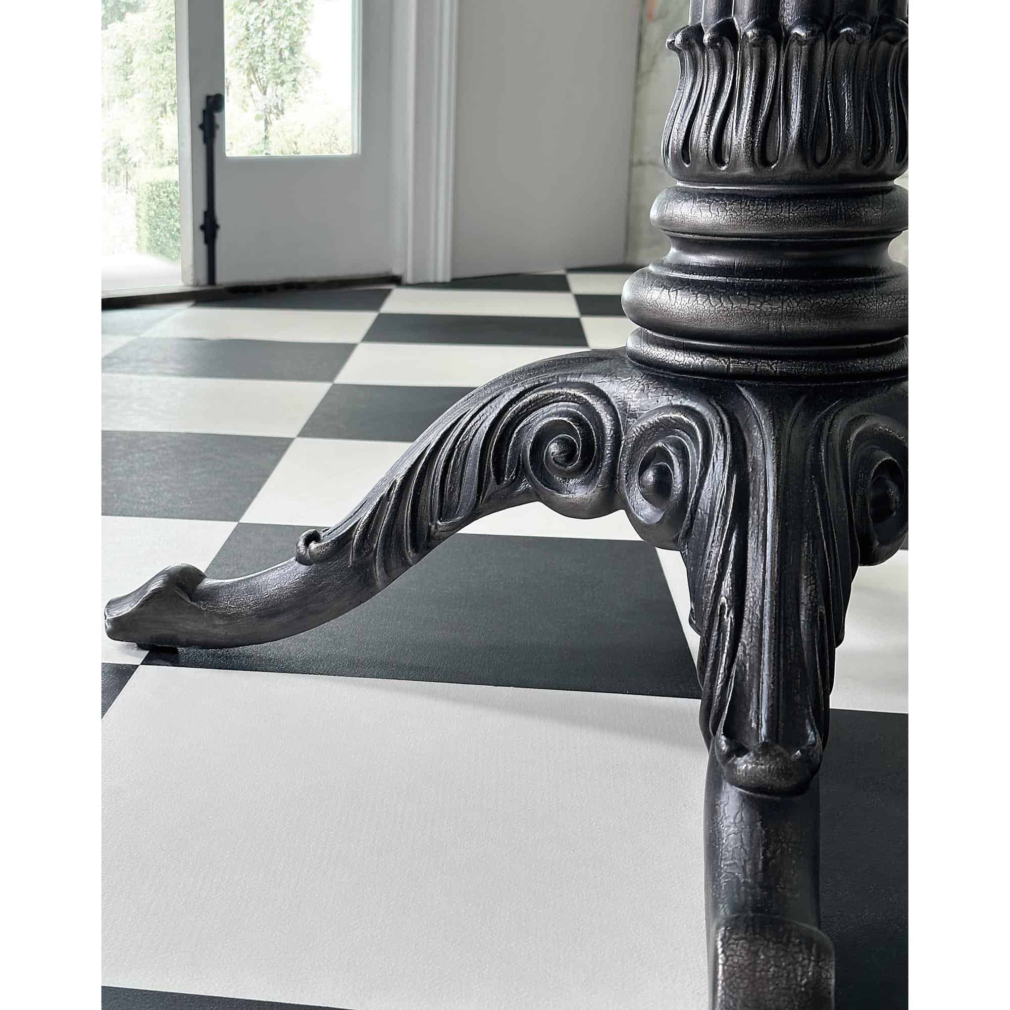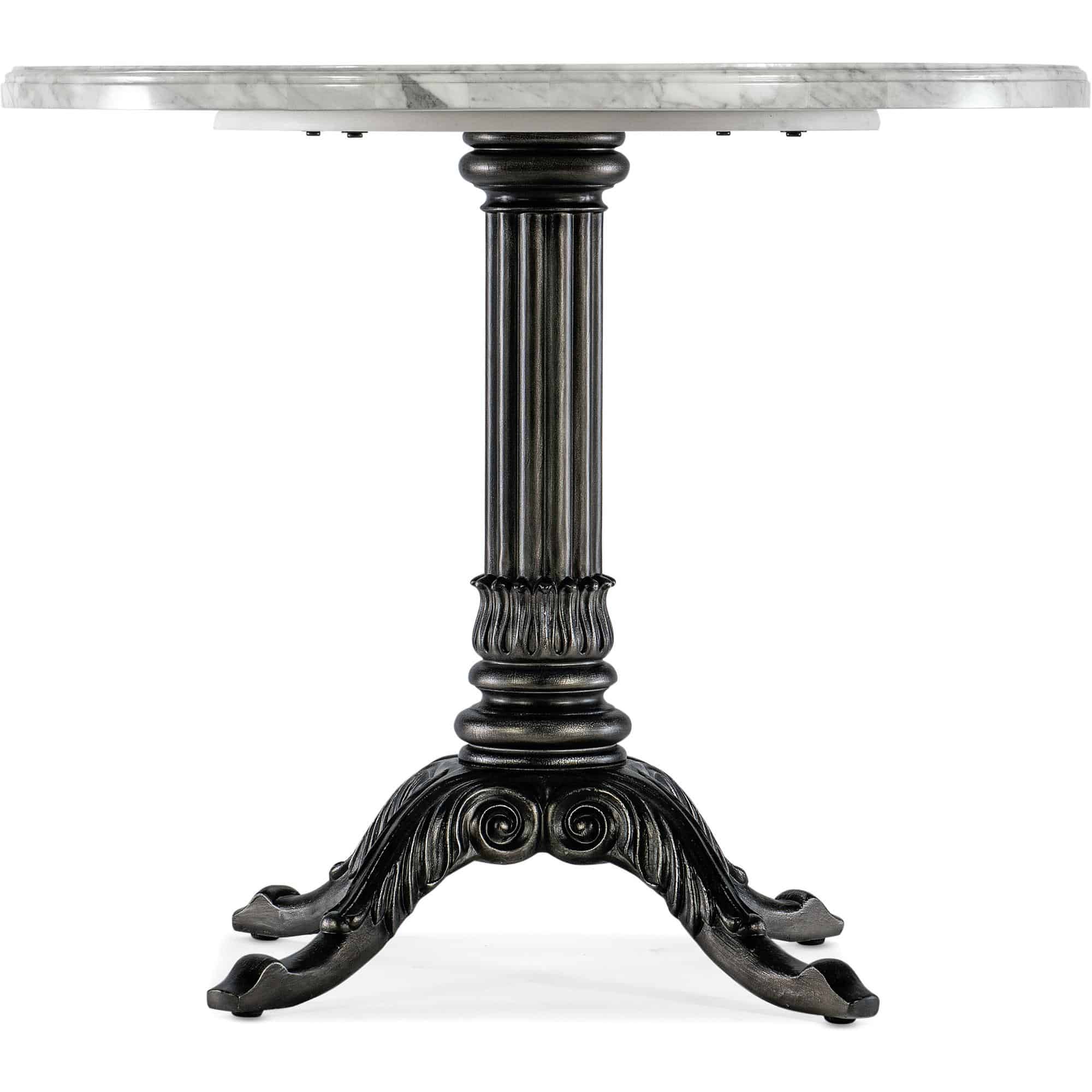 Finish: Table base: Garden Gate: Inspired by the timeless and quite notable features of Charleston, the decorative iron gates that adorn the stately properties. Table top: Veneered Carrara Stone featuring gray and white veining.