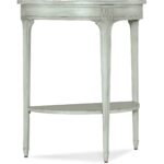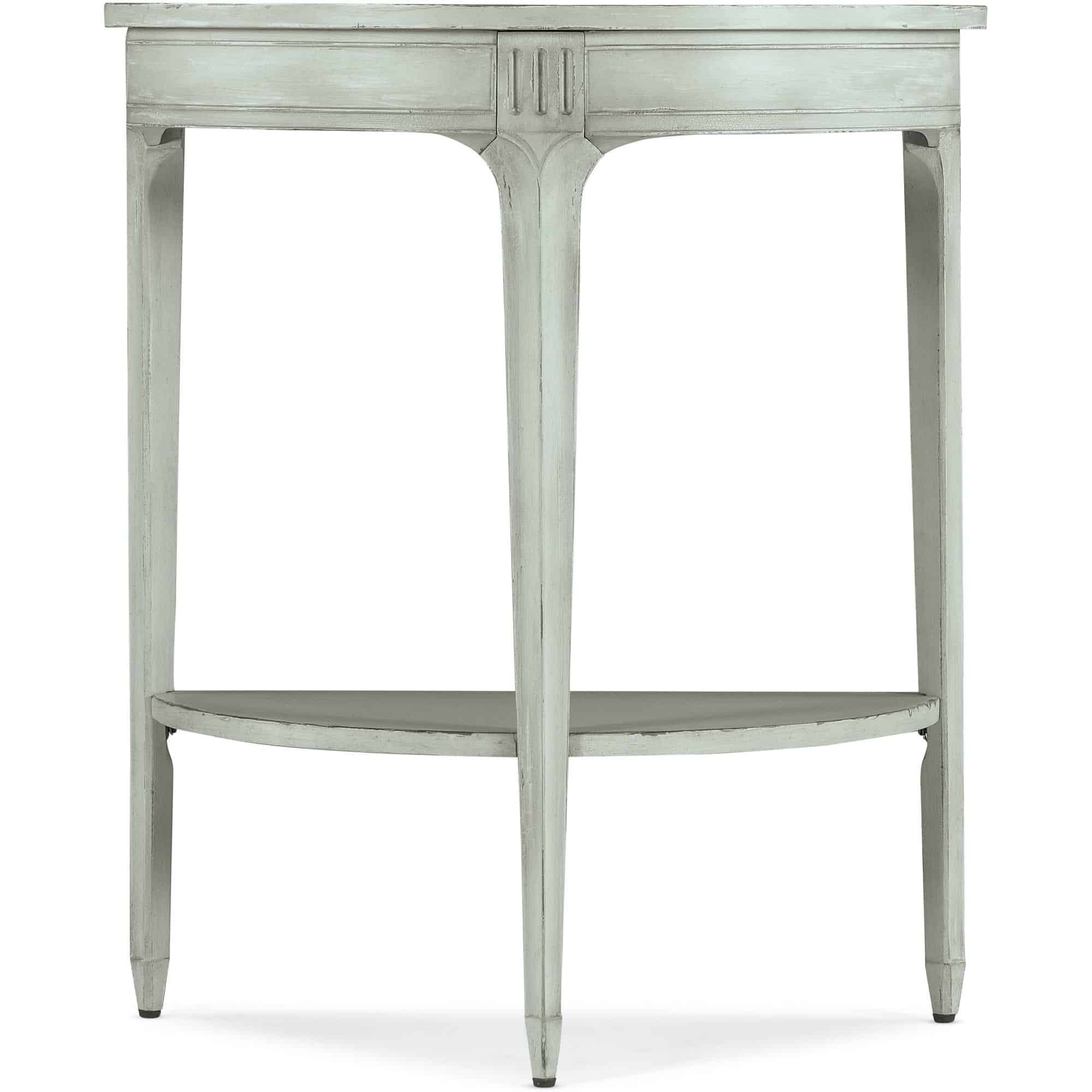 Features: Semi-circle demilune shape One fixed shelf Levelers Carved accents