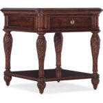 Finish: Maraschino Cherry: finished using natural grain Cherry veneers showcasing the dramatic cathedral structure with the selective inclusion of naturally occurring knots to deliver a rich warm cherry finish and a smooth sophisticated aesthetic. Round knob hardware in antique bronze color.
