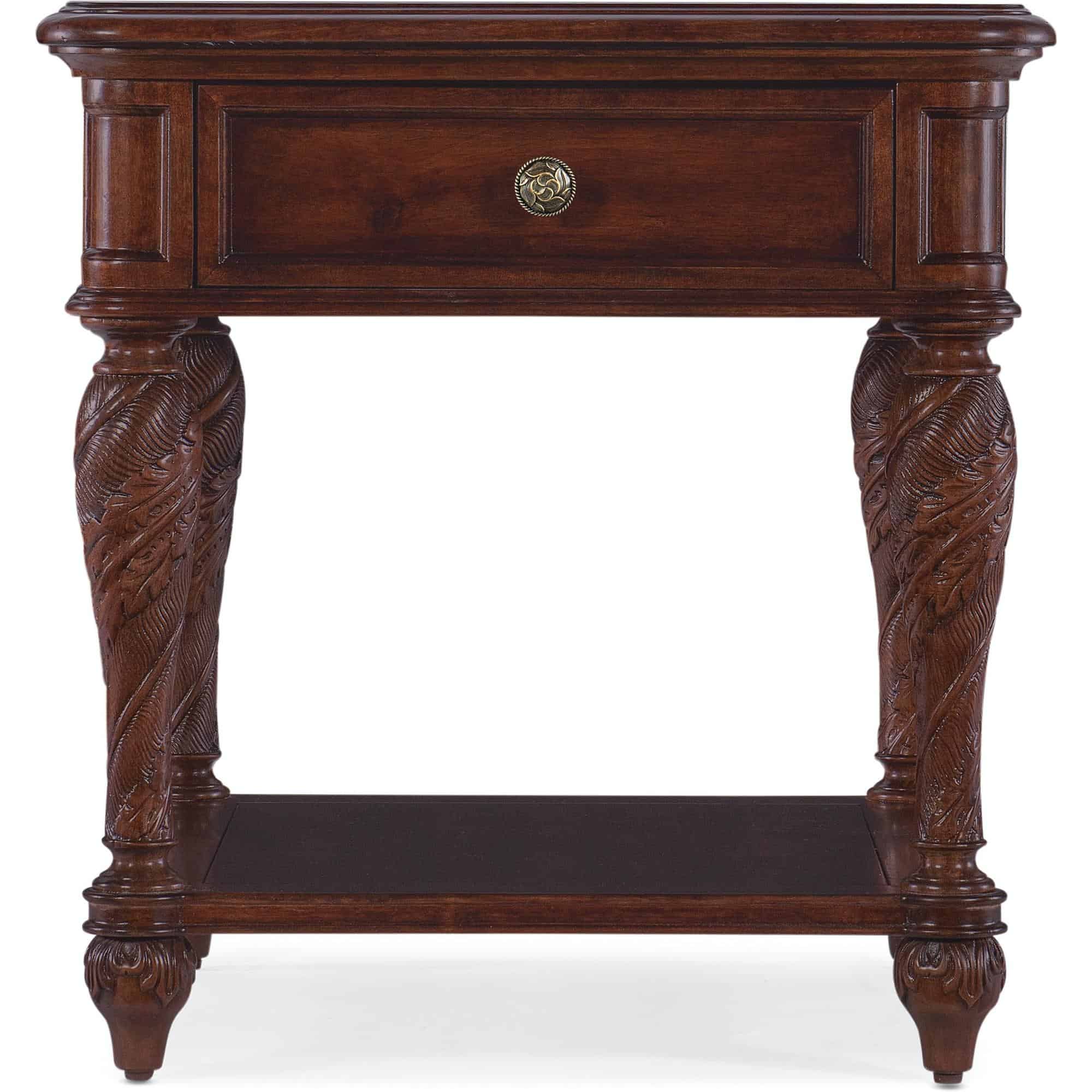 Intricately carved leaf motif on legs