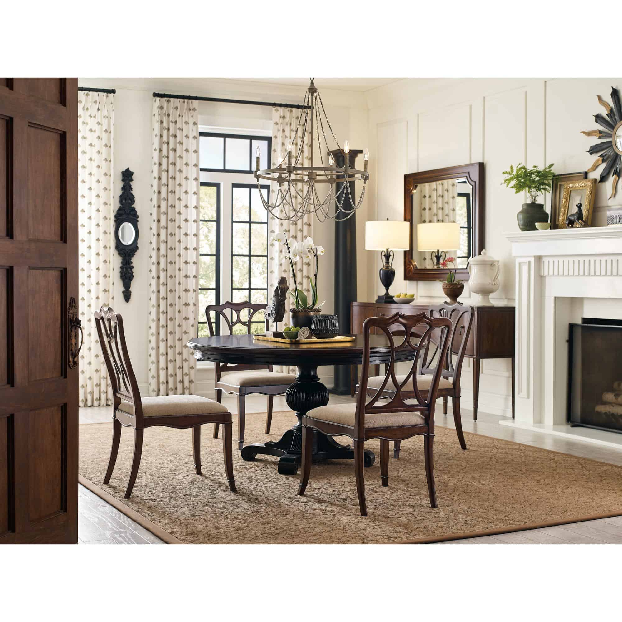 Finish: Table base: Black Cherry: this finish emulates the vibrancy of the warm cherry finish shining from beneath the Black Cherry patina and includes subtle distressing which exemplifies the heirloom nature of the collection. Table top: Maraschino Cherry: finished using natural grain Cherry veneers showcasing the dramatic cathedral structure with the selective inclusion of naturally occurring knots to deliver a rich warm cherry finish and a smooth sophisticated aesthetic.