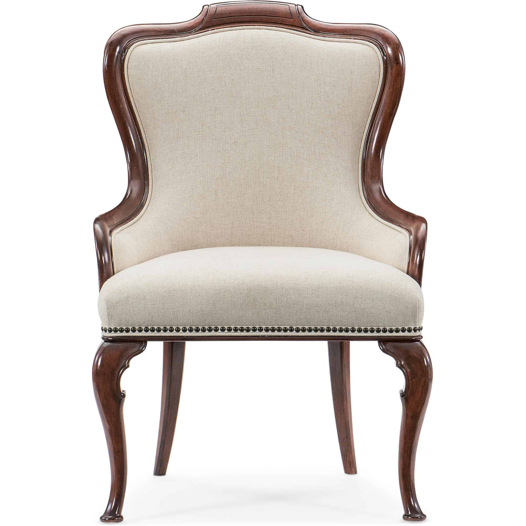 Bronze nailhead trim along seat base