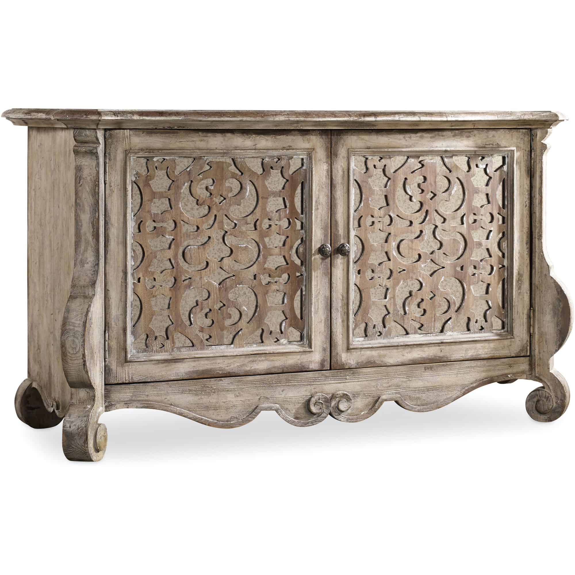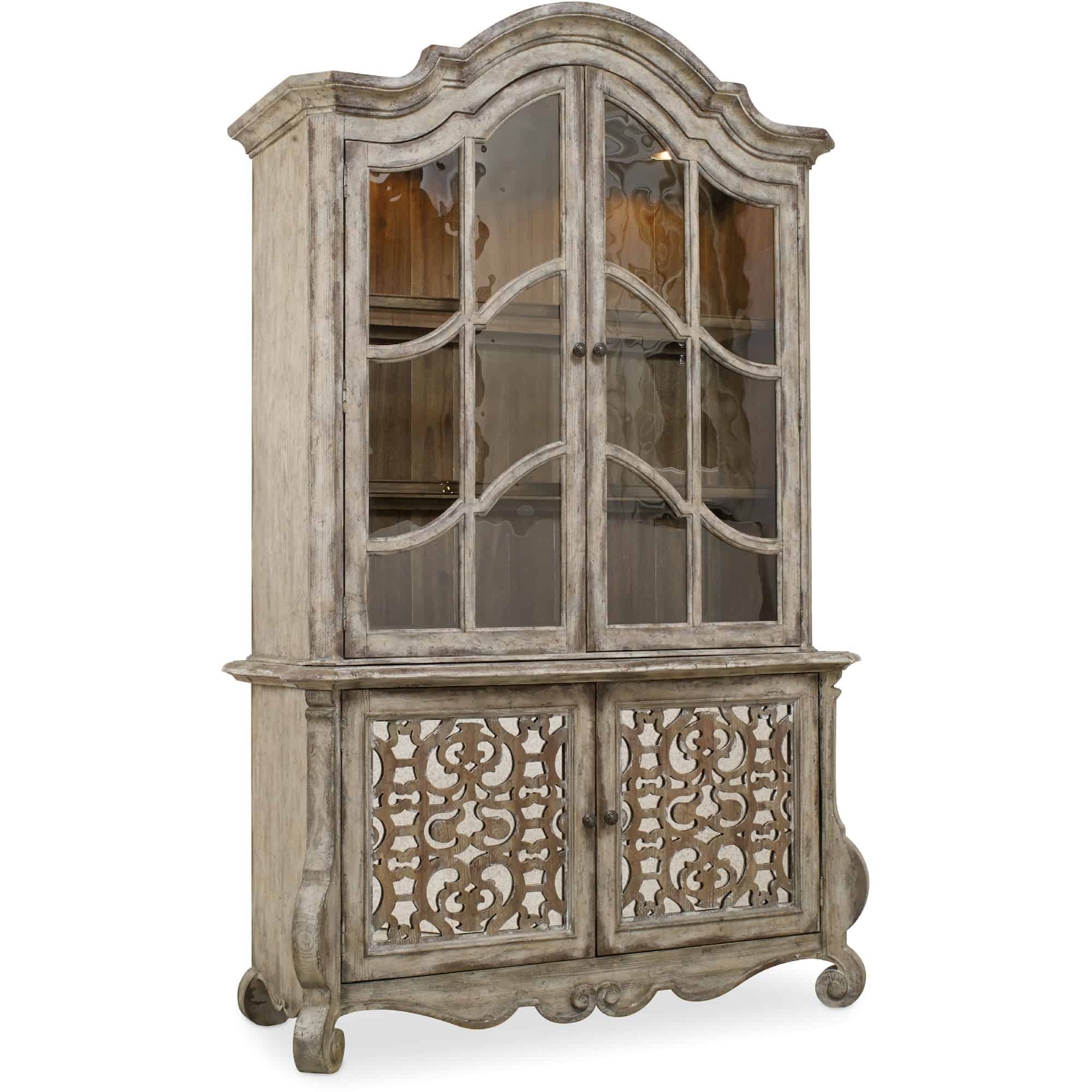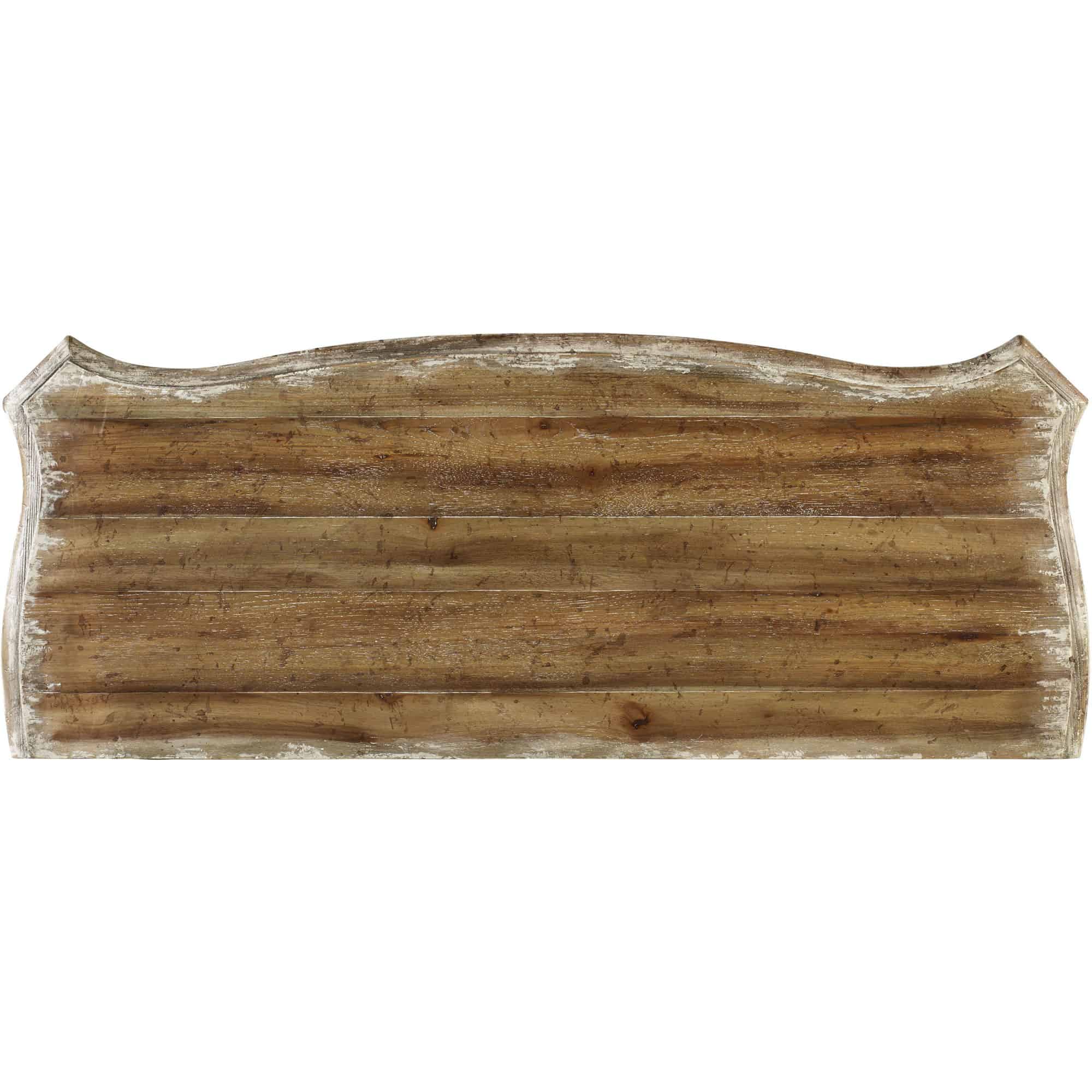 - Finish: A combination of Caramel Froth and Paris Vintage. Pecky pecan veneers are warmed by a soft amber color and a touch of aged white paint to highlight distinctive grains and moldings in the Caramel Froth finish. The Paris Vintage finish is a distressed vintage white with fretwork overlay on select pieces. Custom-designed, generously scaled, burnished bronze drawer pulls and hardware is inspired by antiques. Distressing includes scraping lines, sloping lines and rasping.