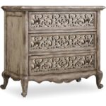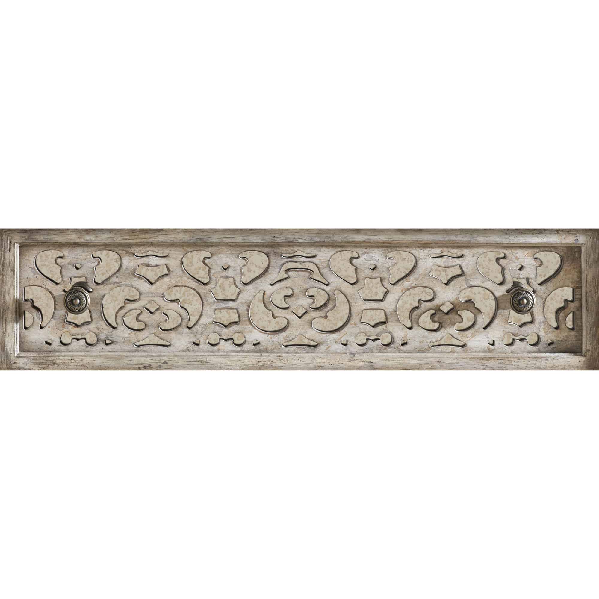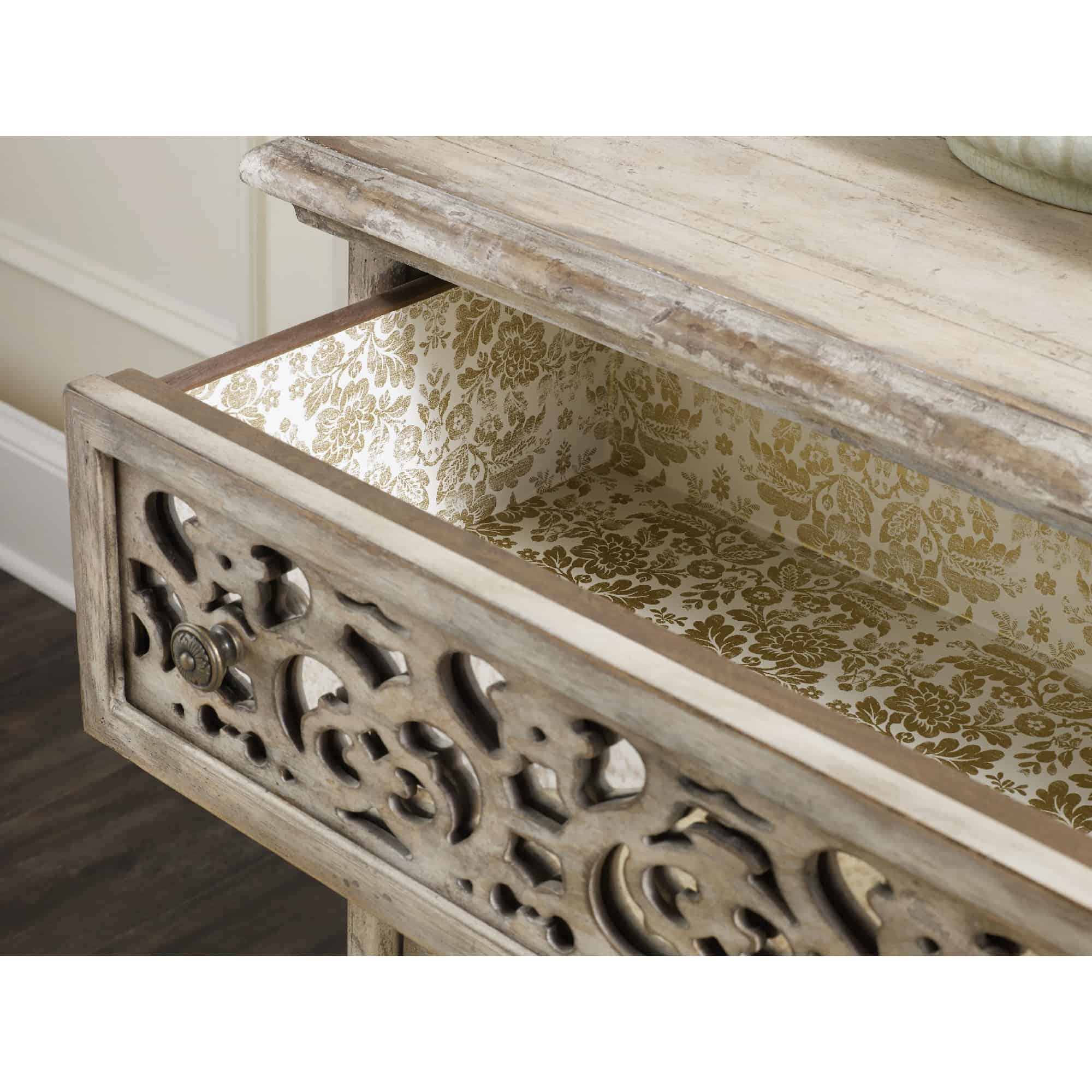 Finish: The Paris Vintage finish is a distressed vintage white with fretwork overlay on select pieces. Custom-designed, generously scaled, burnished bronze drawer pulls and hardware is inspired by antiques. Distressing includes scraping lines, sloping lines, rasping and worm holes.