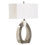 Add contemporary flair to your home with Chatham Lamp. This sleek design features a polished nickel finish with a natural crystal white marble detail. Topped with an off-white linen shade, this accent lamp is sure to provide ample lighting for a bedroom, foyer or living area.