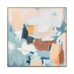 The Cherish framed painting captures a delicate balance of warmth and serenity, melding vibrant orange with tranquil blue to inspire feelings of comfort and hope. This abstract piece embodies an uplifting spirit, it serves as a heartening focal point—a celebration of cherished moments.