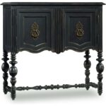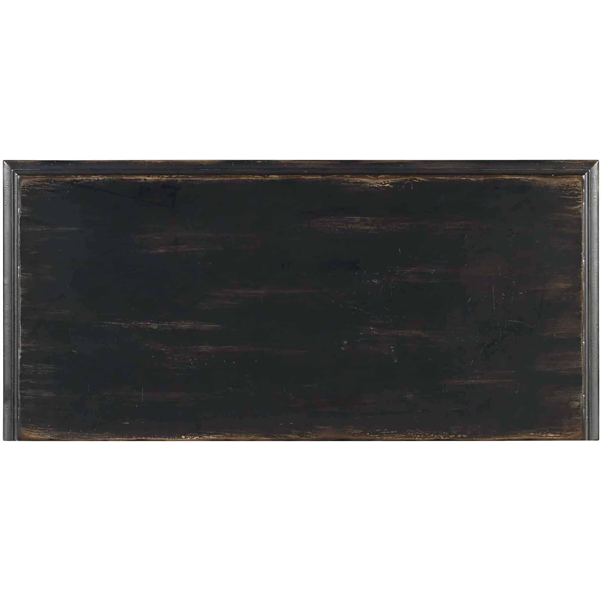 - Finish: Black distressed finish. Distressing includes rub-through.