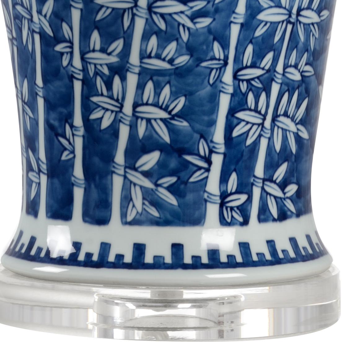 Bamboo inspired blue and white hand painted vase on crystal mount.