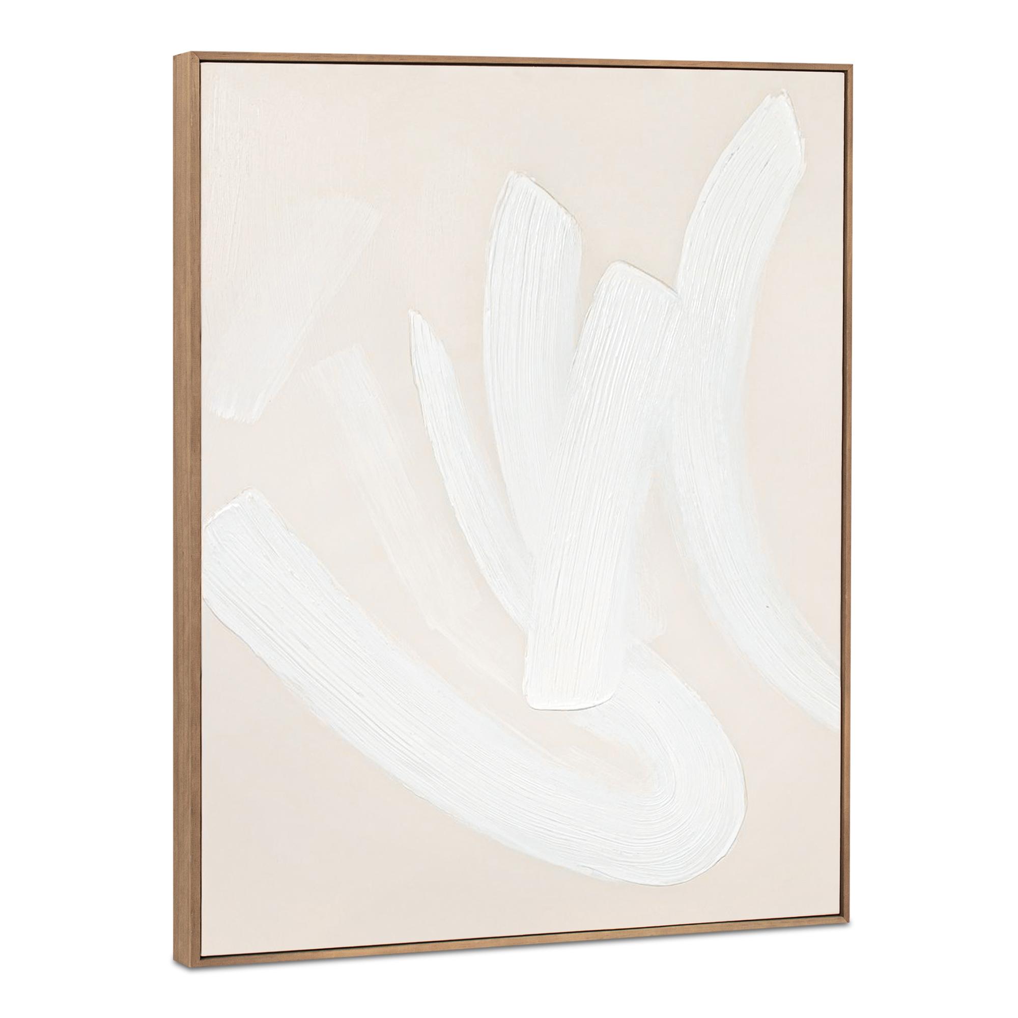 The Chorus framed painting encapsulates an abstract yet balanced aesthetic, employing neutral tones and considered, whimsically lyrical brush strokes that seemingly dance with the lightness of poetry. This transitional piece radiates understated elegance and is available in squared and portrait sizes to enchant individually or as a collective set.