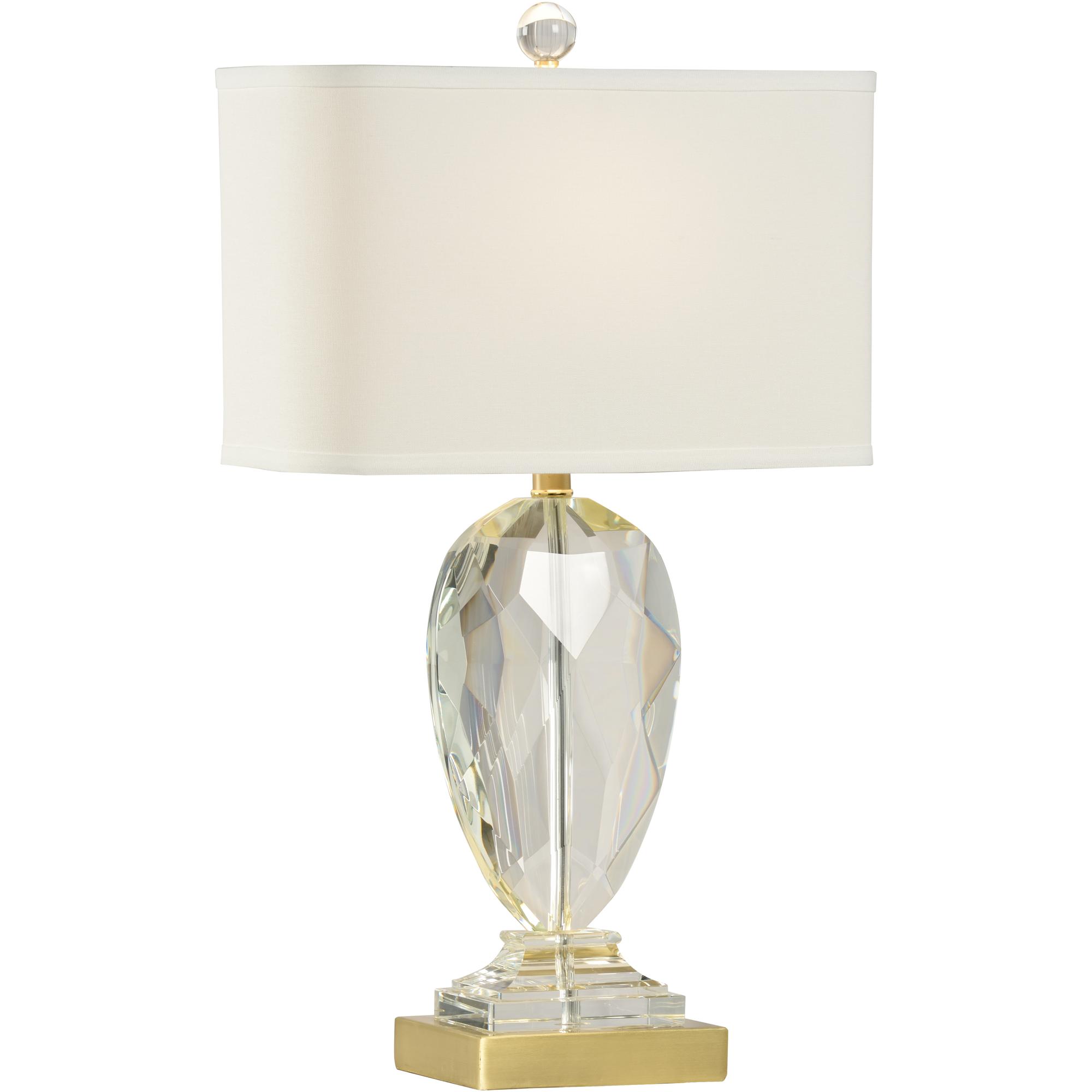 Cut crystal with antique brass finish on mounting, USB and data port on base.