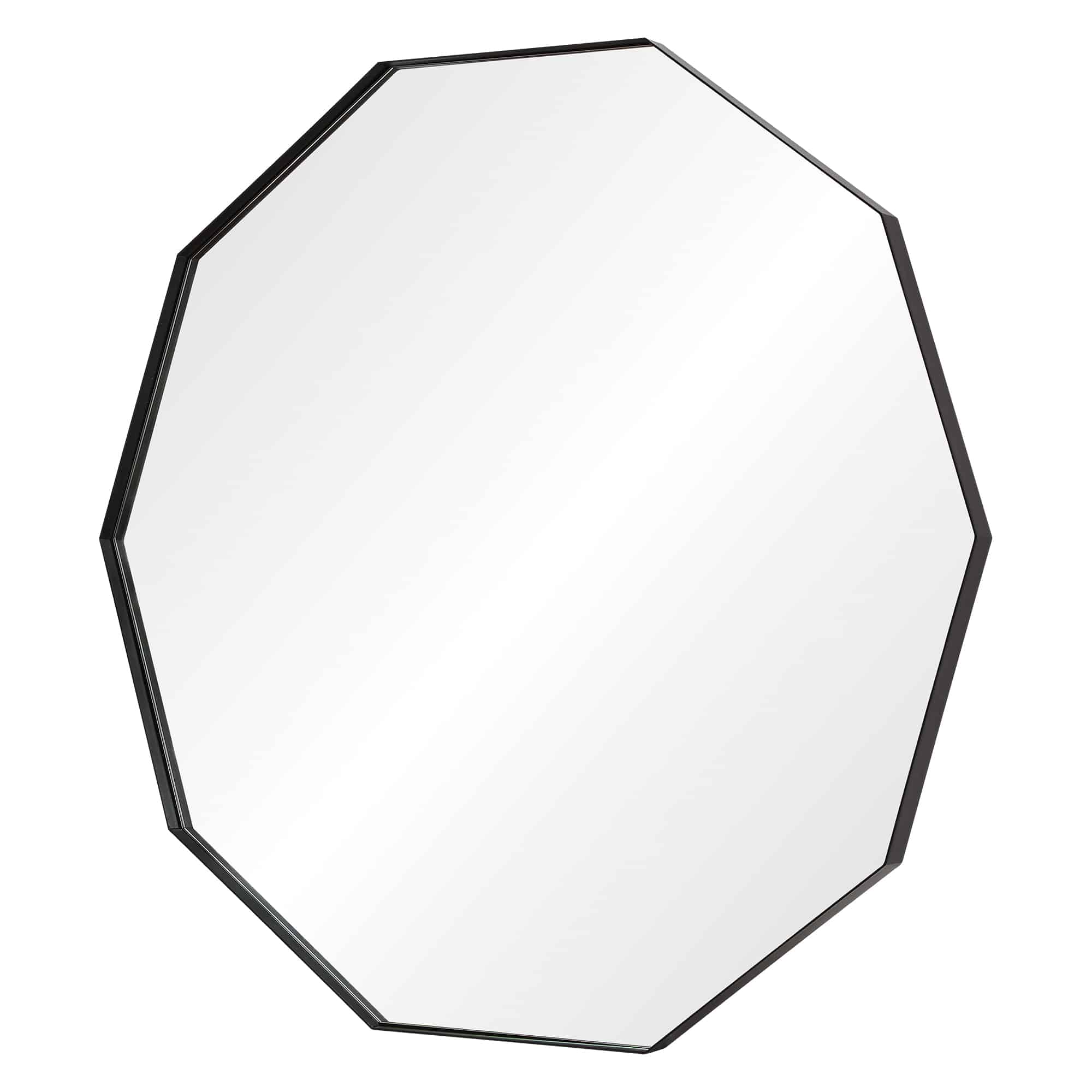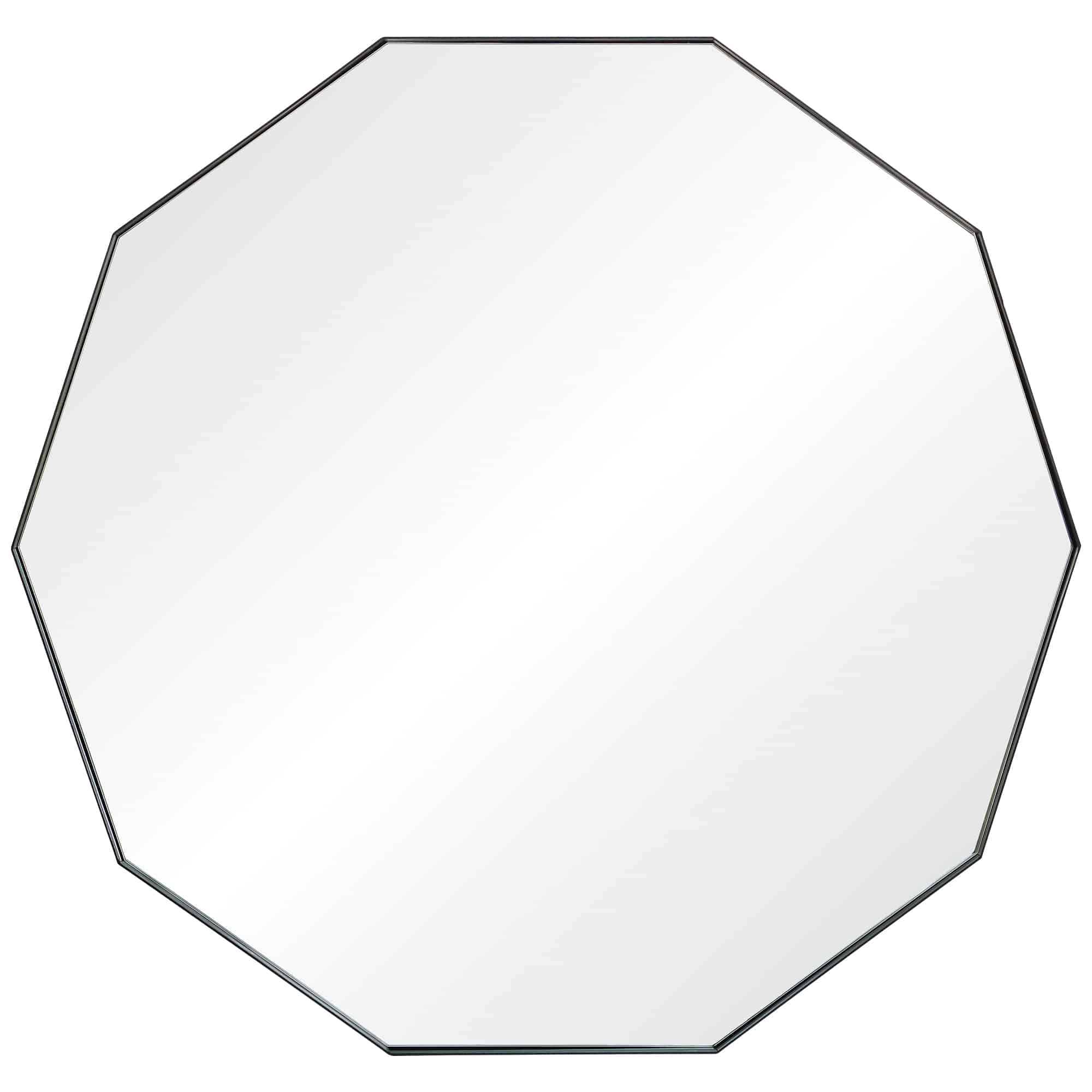 The angular design of this decorative wall mirror brings modern reflections to new dimensions. The 10-sided decagonal iron frame is finished in Matte black, with oversized proportions that exude glamour. A contemporary accent piece that plays with geometric principles of shape and scale, this large-format wall mirror hangs over couches and console tables, capturing every reflection in the room.