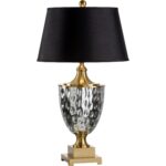 Combine modern mercury glass with a classic silhouette for a one of a kind table lamp. Christopher lamp is crafted in dimpled mercury glass with antique brass accents. A black silkette tapered drum shade completes the look and diffuses the light creating a luminous shine. This 33″ accent lamp is ideal for an entryway console or living area credenza.