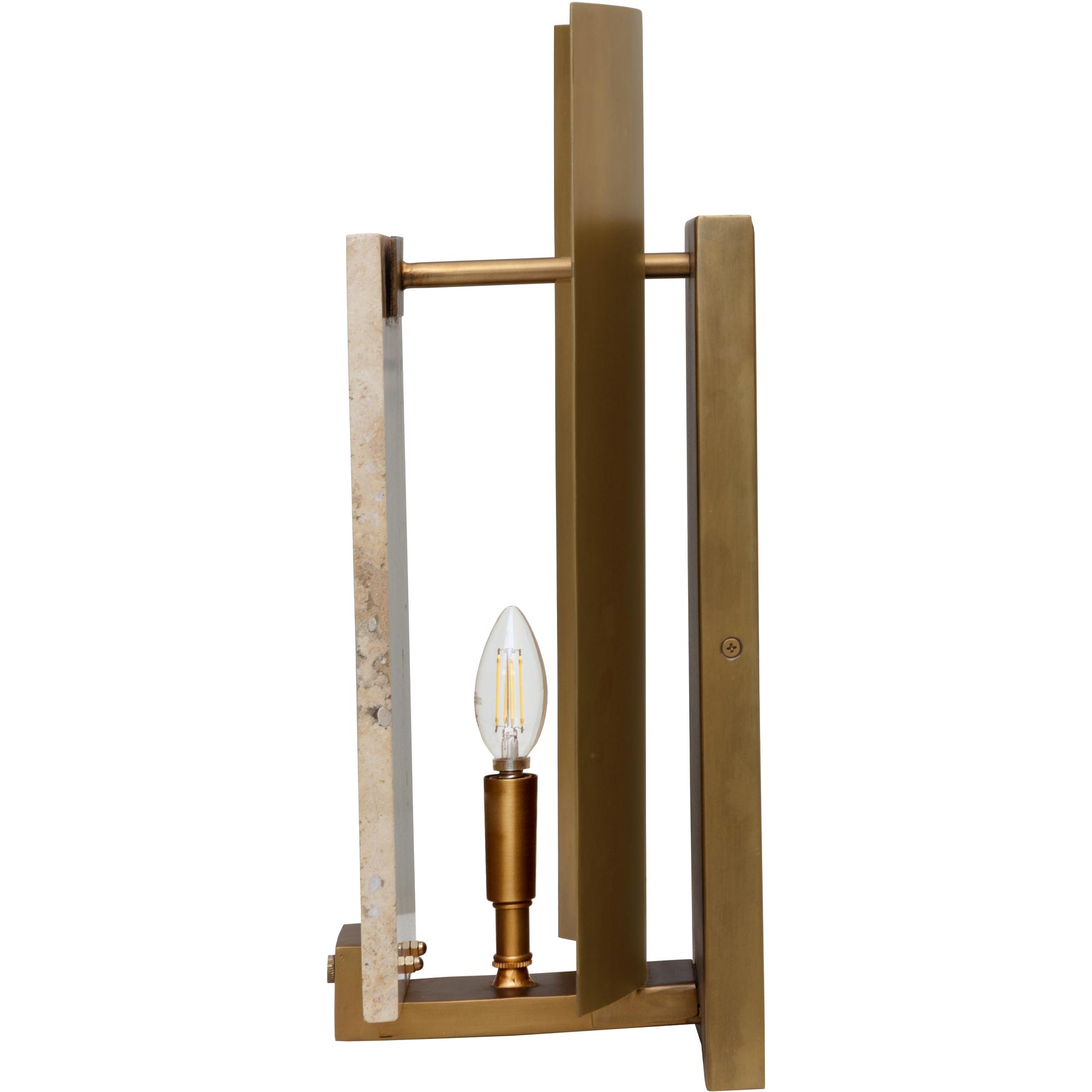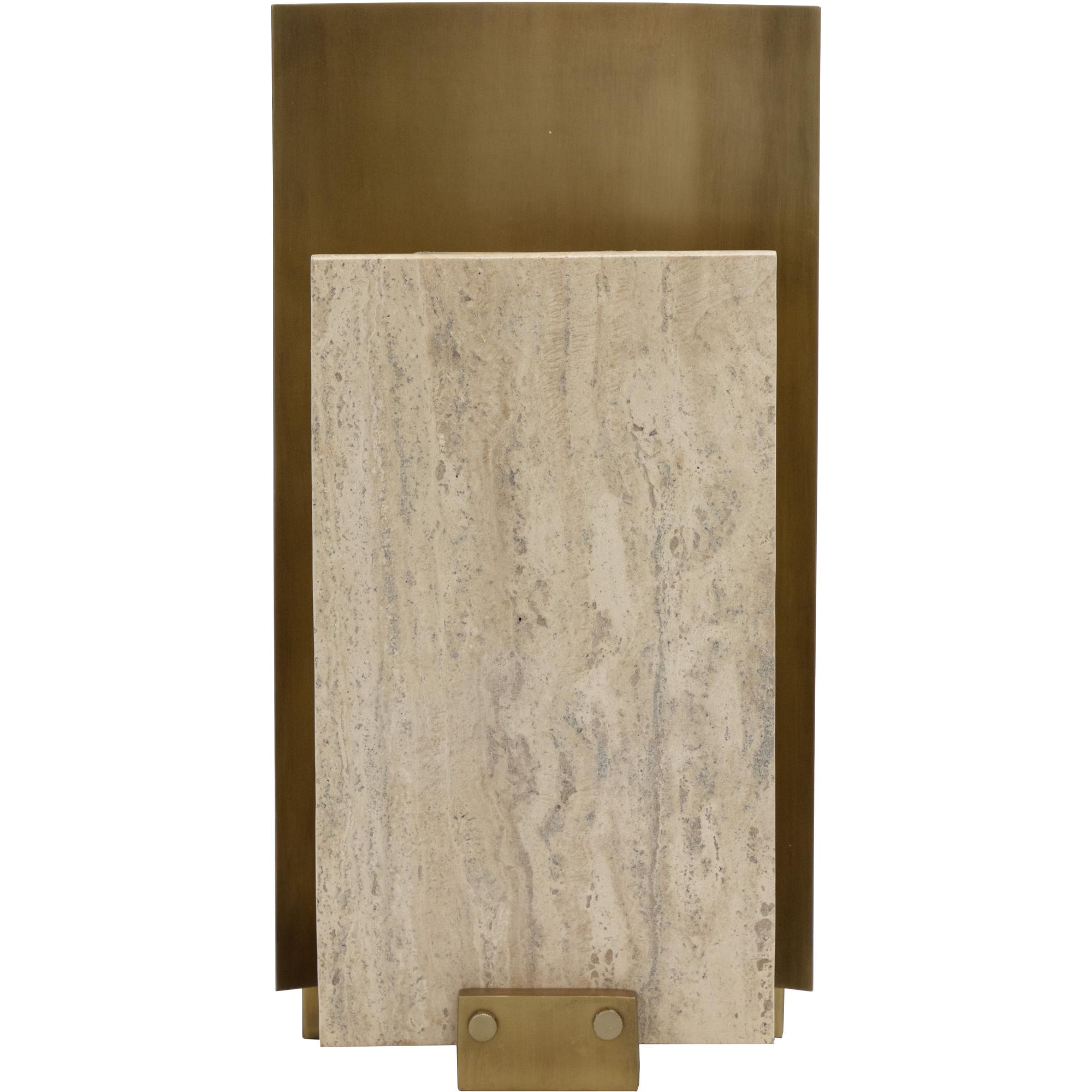The Ciana Sconce embraces modern sophistication by bringing natural travertine and antique brass iron together. Using only a single bulb, the warm tones of travertine shine through to cast a stunning glow.