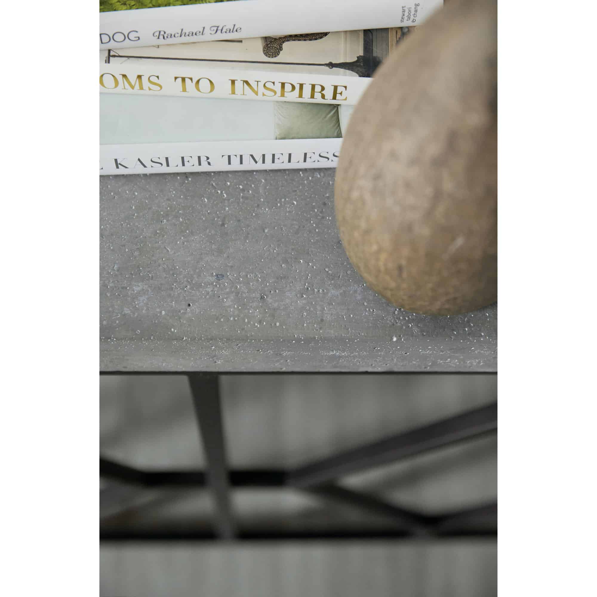 - Finish: Aged steel base with faux concrete top