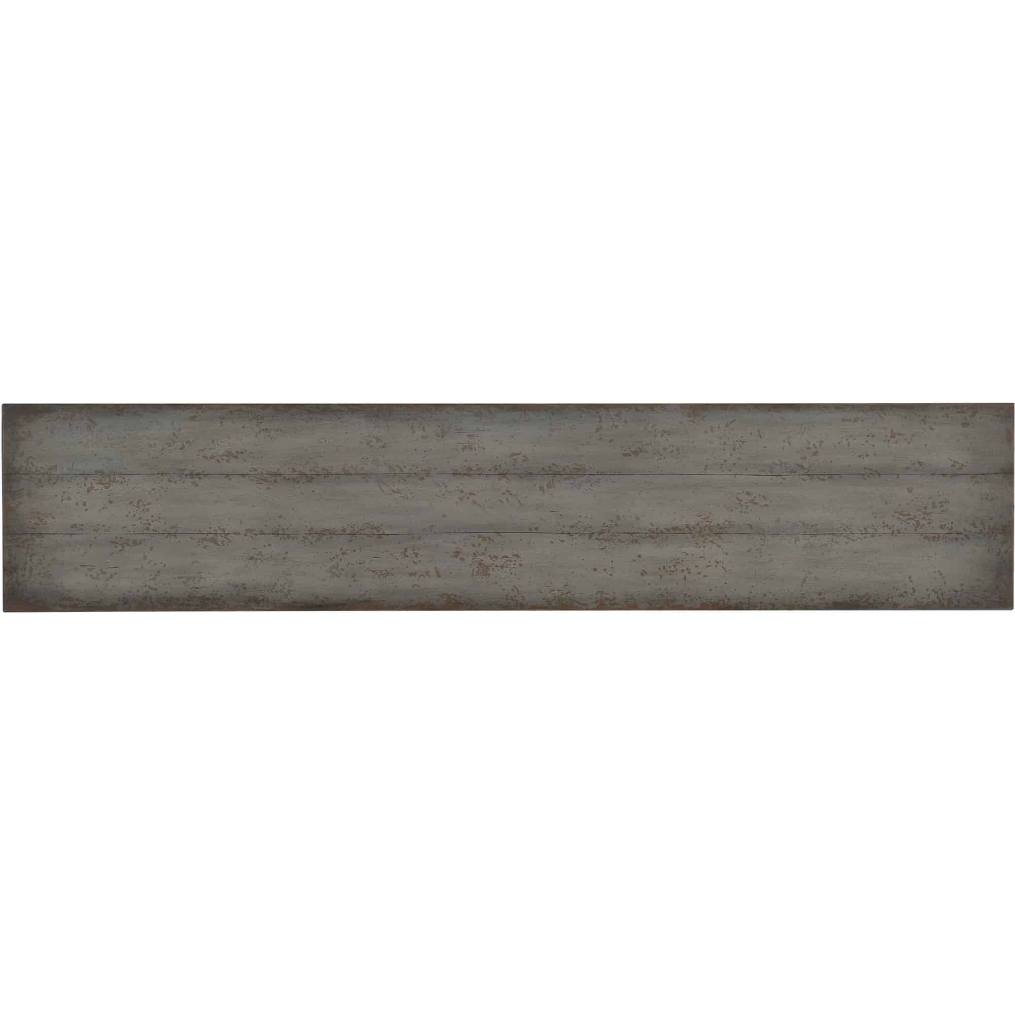 - Finish: Speckled Gray finish. Distressing includes rasping, hand chiseling, worm holes, emolsion, multi-layer rub through, spatter, water marks, and cow tailing. Burnishind brass hardware.