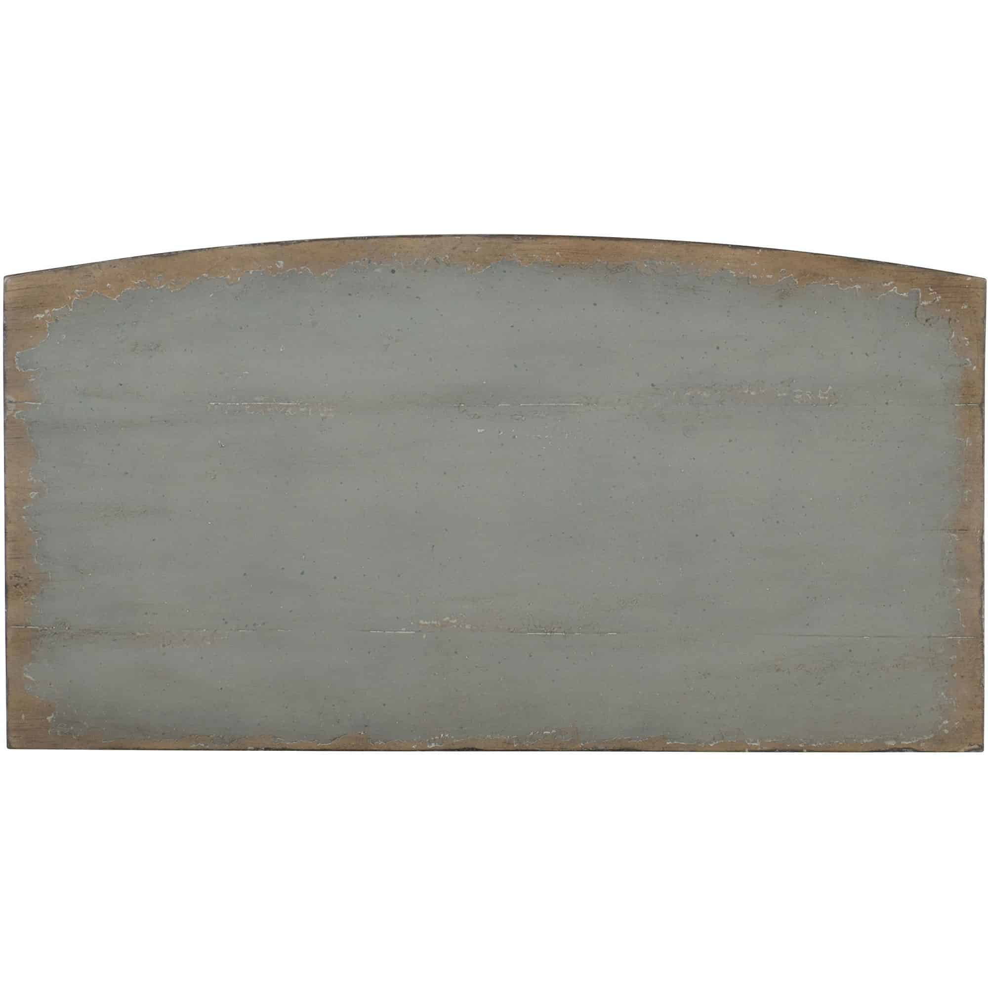 Finish: Time Worn gray finish with distressing including rasping, emolsion, multi-layer rub-through, spatter, water marks and cow tailing. Burnished brass hardware.