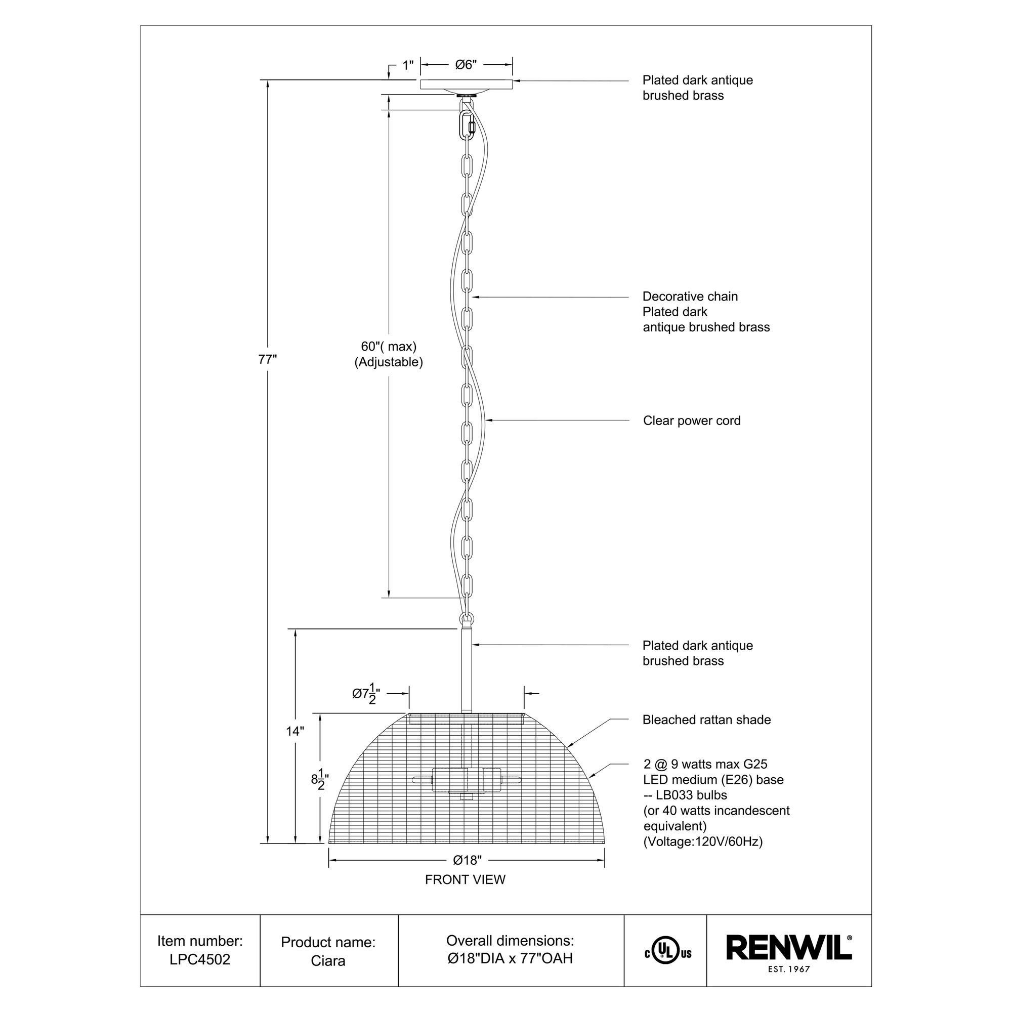 - 60″ Max. Chain Length
