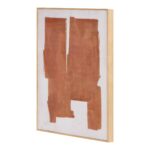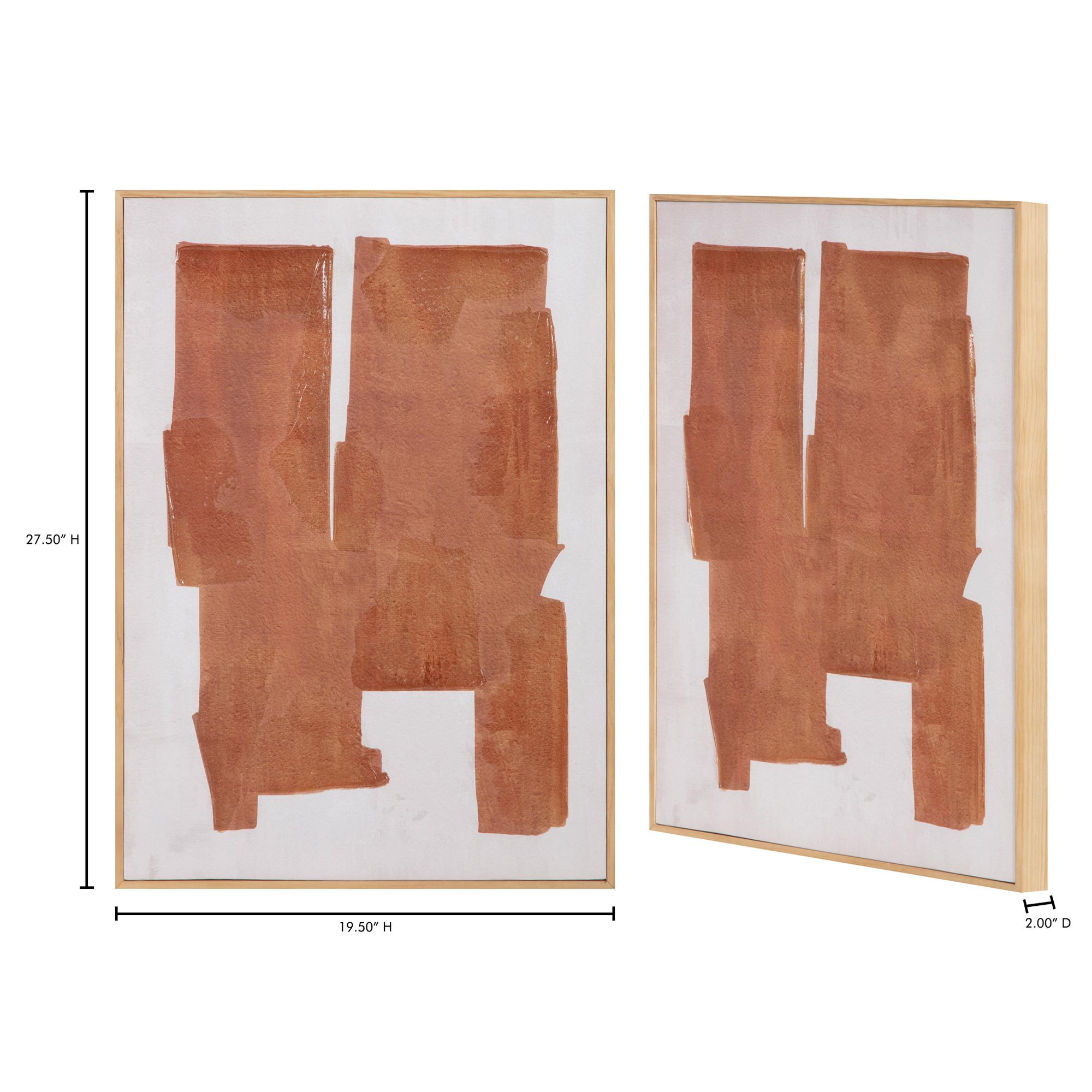 A painting with an abundance of abstract allure where sharp angles are elegantly softened by muted tones, Cici’s complementing pink and orange hues evoke an earthy warmth, creating a serene yet striking composition—a captivating piece expertly finished with a solid pine frame.