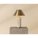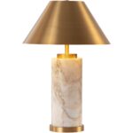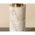 The Cilla Table Lamp features an opulent combination of luxe mixed materials. A cylindrical base of rich Italian marble highlights varying colour tones and organic veining patterns, giving each lamp a distinct character. Topped with a tapered metal shade in a brushed gold finish that beautifully complements the modern design and enhances the lamp’s pleasant glow.