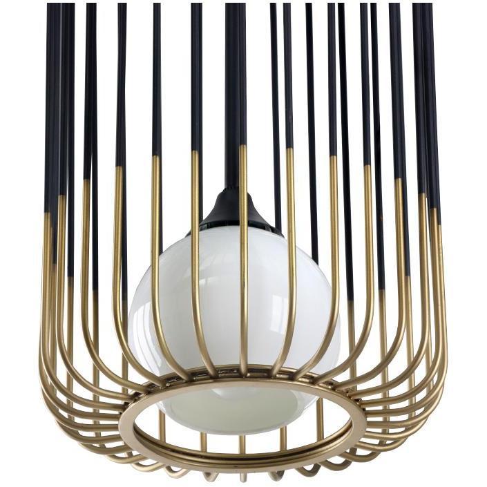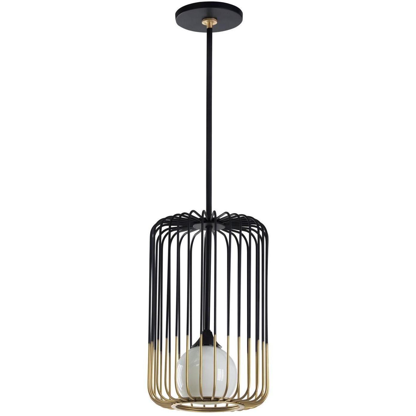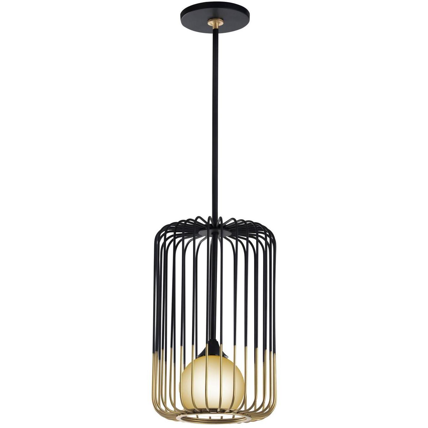A fusion of industrial and Art Deco design unite to create this captivating pendant light. Features a misted glass globe encapsuled by a brushed black and brass frame for additional depth. Made in India. With refined craftsmanship, this design was brought to life by skilled local artisans. Due to the nature of handcraftsmanship, unique imperfections such as fissures, markings and variations in colour and shape are welcomed and appreciated characteristics for a truly one-of-a-kind piece.