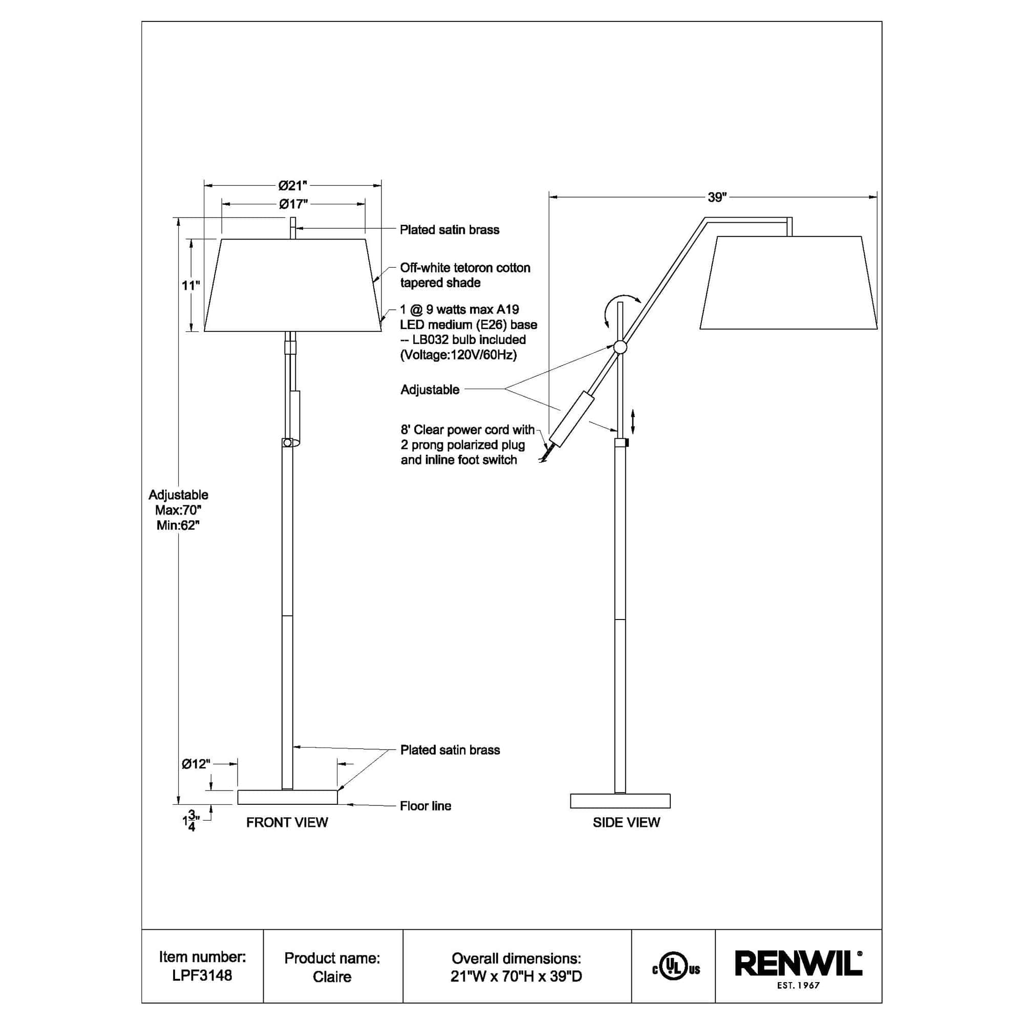 Traditional construction gets a stylish makeover in this floor lamp design. An optimal fit for a living room or home office, the arching structure of this piece makes it ideal to set near a sofa or desk. With a satin brass finish and crisp white shade, this floor lamp pairs equally well with neutral tones as it does vibrant hues and printed wallpaper.