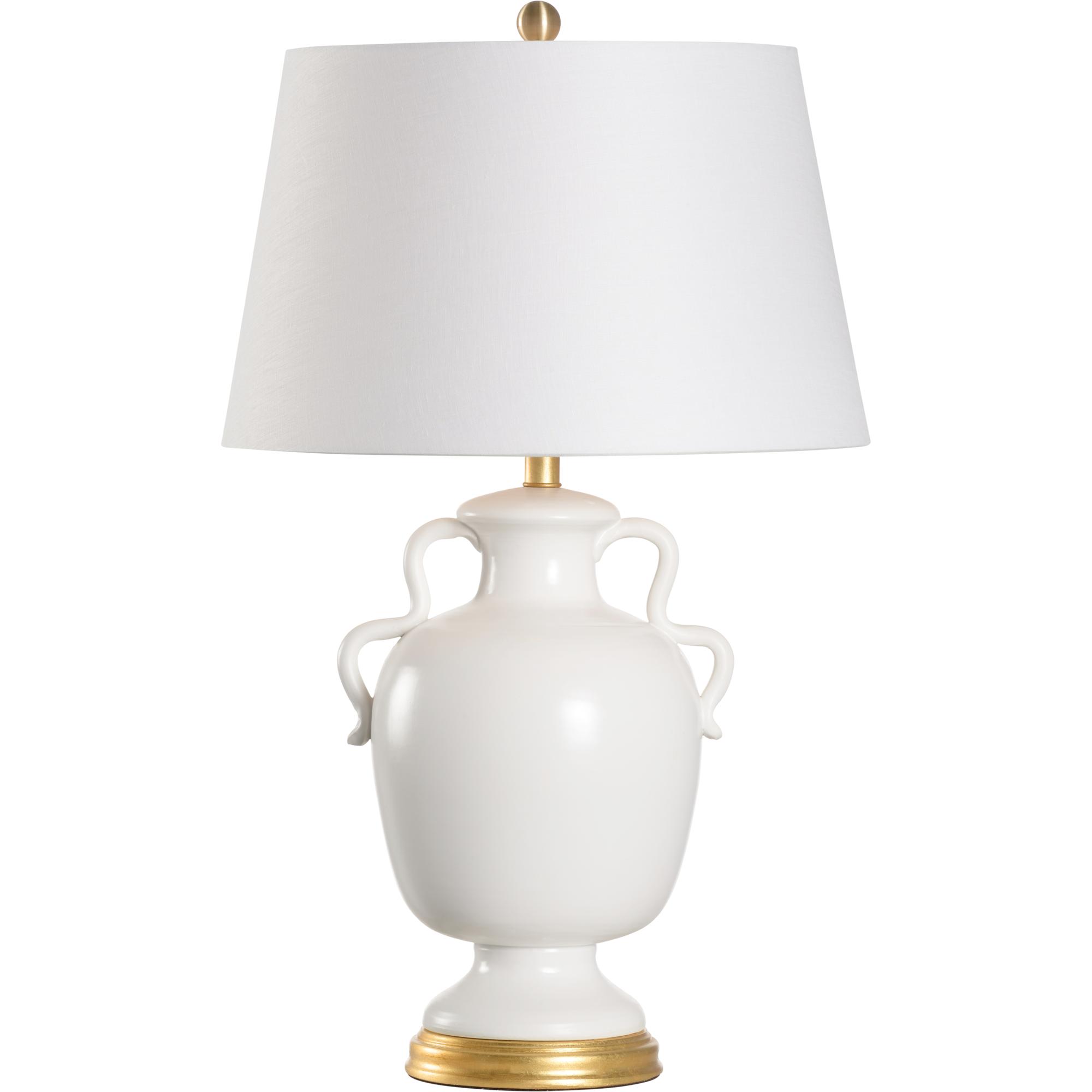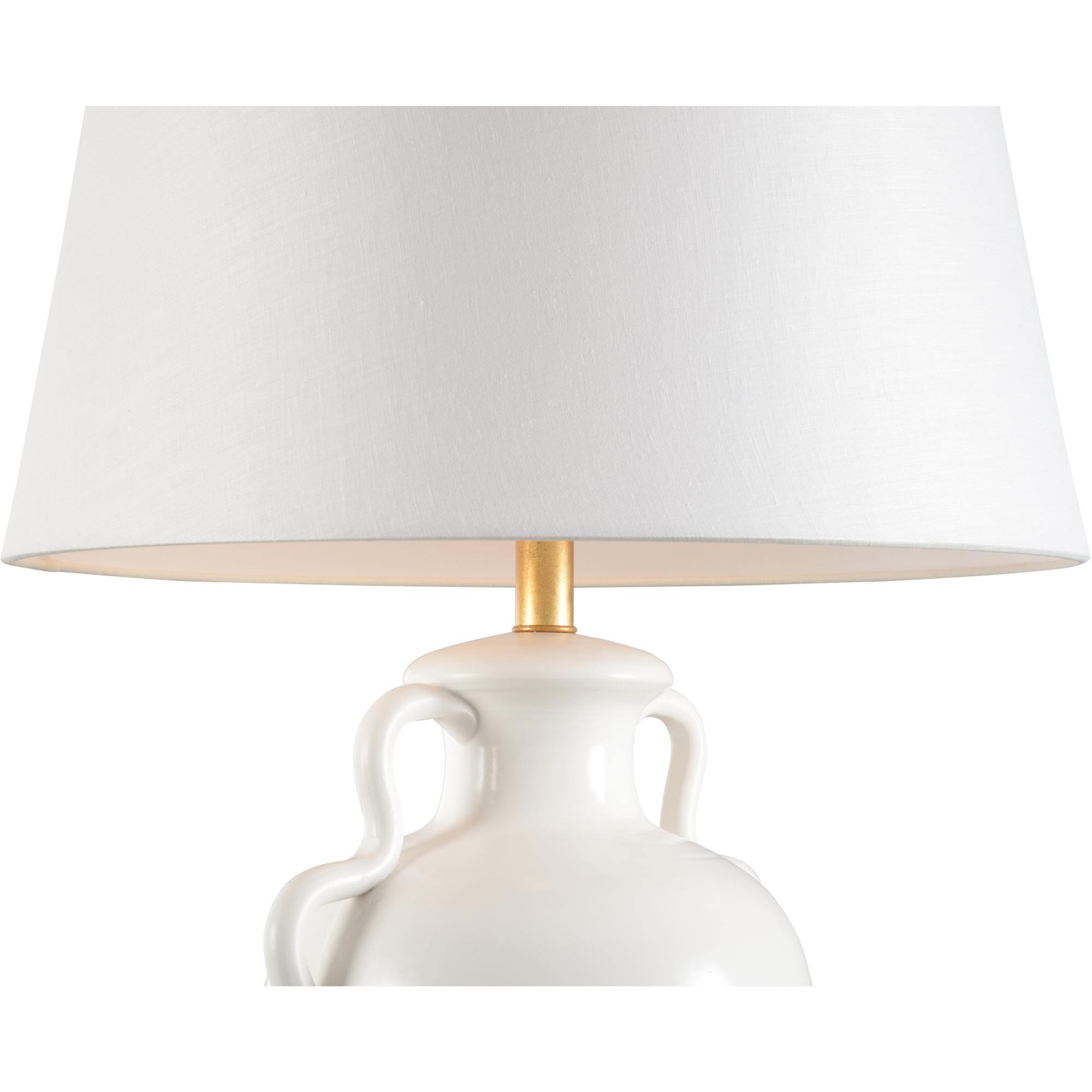 Elevate your decor with our Claire Lamp. This exquisite lamp features a graceful urn silhouette in pristine white ceramic, complemented by a luxurious gold leaf wooden base that adds a touch of opulence. Topped with an off-white linen shade, it offers a soft, warm glow that enhances any space. Ideal for adding a refined touch to your living room, bedroom, or study