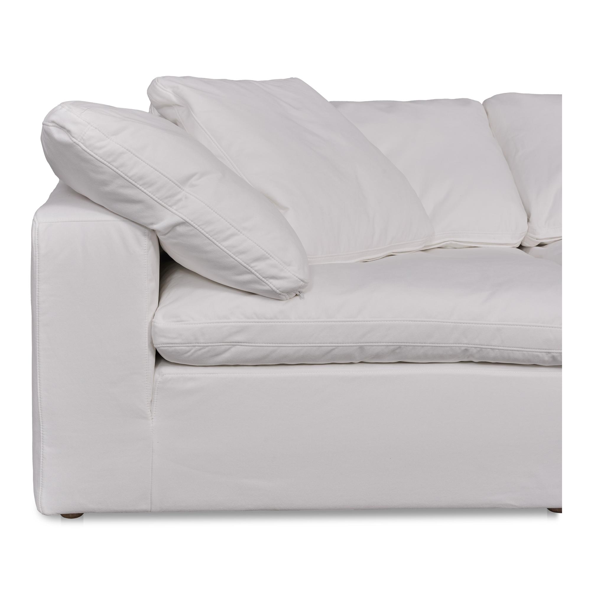 The Clay modular sofa is upholstered with our Performance Technology Fabric, which is moisture-repellent, stain-resistant, and offers barrier protection. Its cushions are filled generously with feather and fiber blend, and channeled and double-wrapped to maximize durability. The top eight inches of cushioning are filled with foam, making it ultra comfortable while being able to withstand the demands of a bustling household.