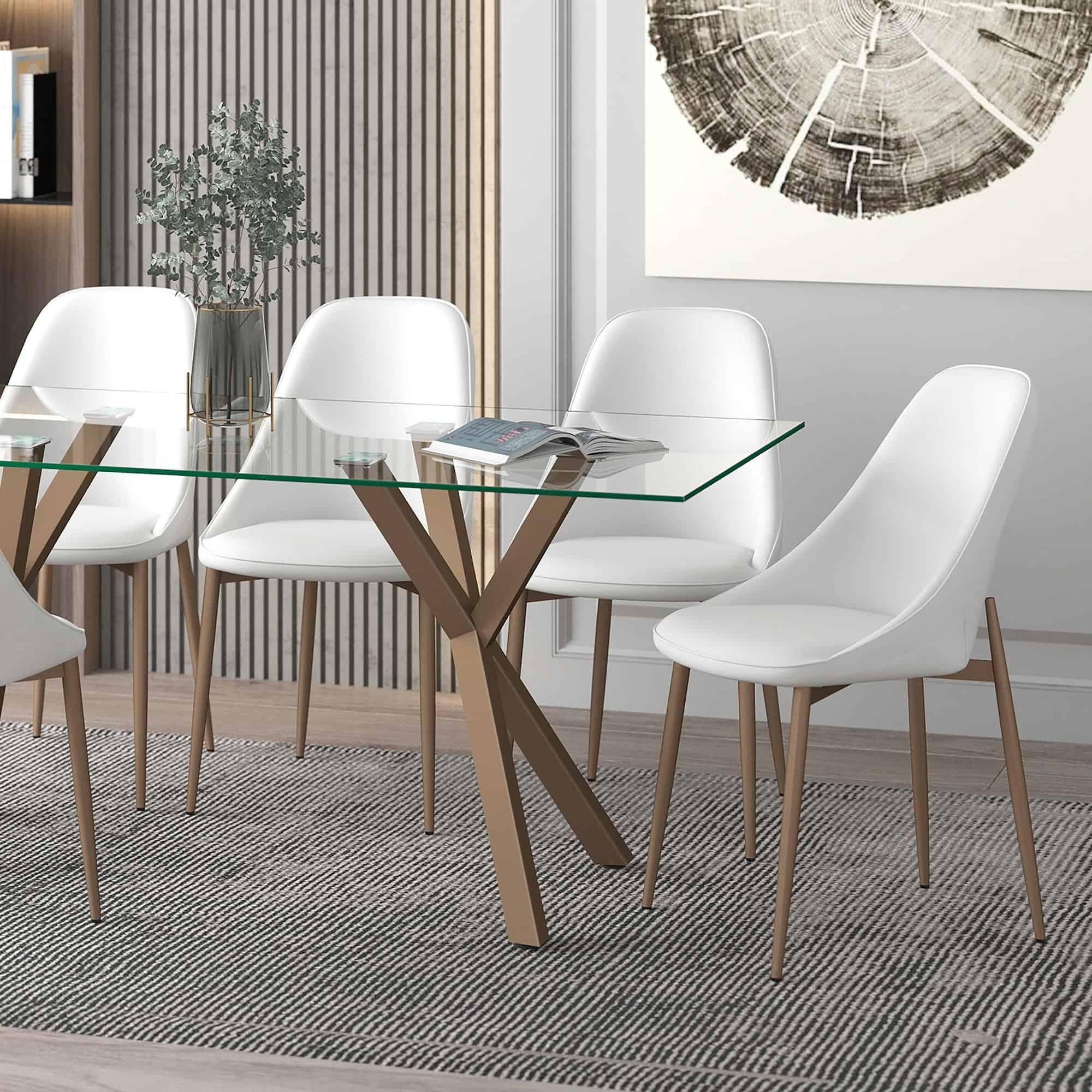 Cleo Side Chair, Set of 2, in White and Aged Gold