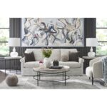 Anchoring any room it graces, the Coalesce Cocktail Table is a focal point of craftsmanship in a Rolling Fog finish, adorned with tasteful metal accents. Its robust presence centers the interior aesthetic with a seamless blend of form and function.