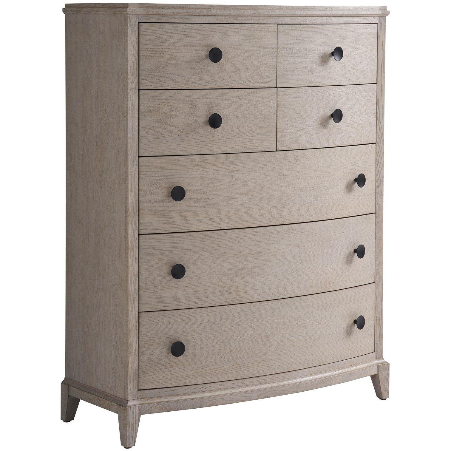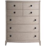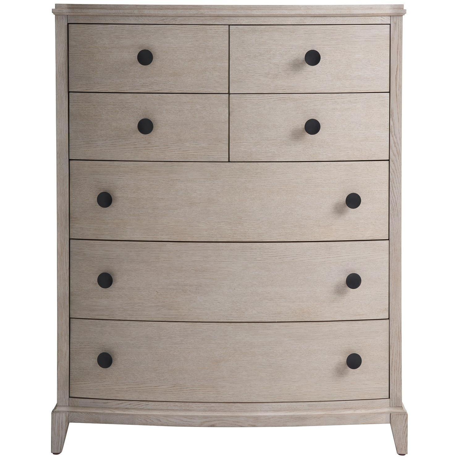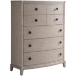 The seven-drawer Coalesce Drawer Chest chest marries functionality with style, featuring a sophisticated Rolling Fog finish and complemented by elegantly rounded drawer pulls, making it an impeccable addition to any refined bedroom ensemble.