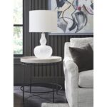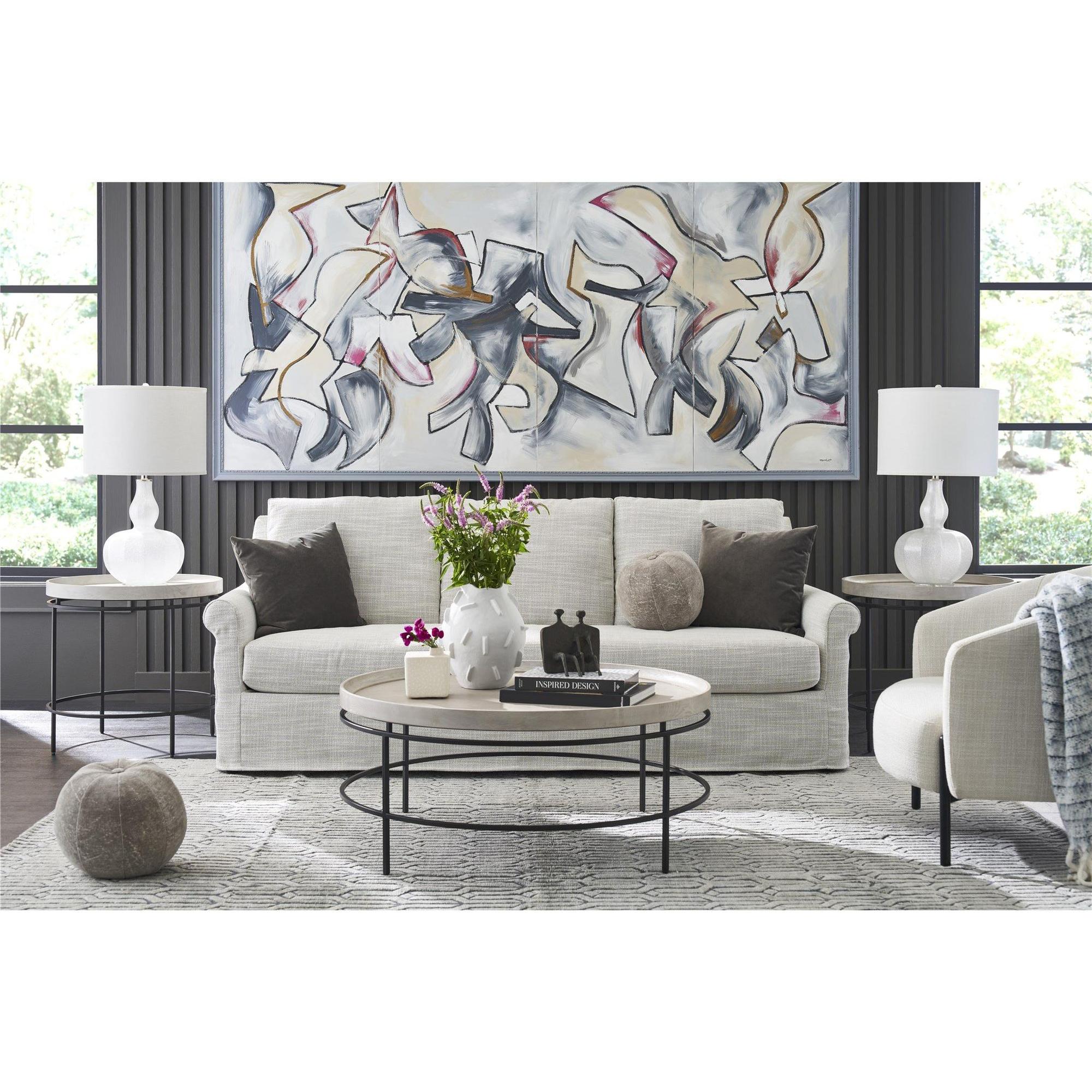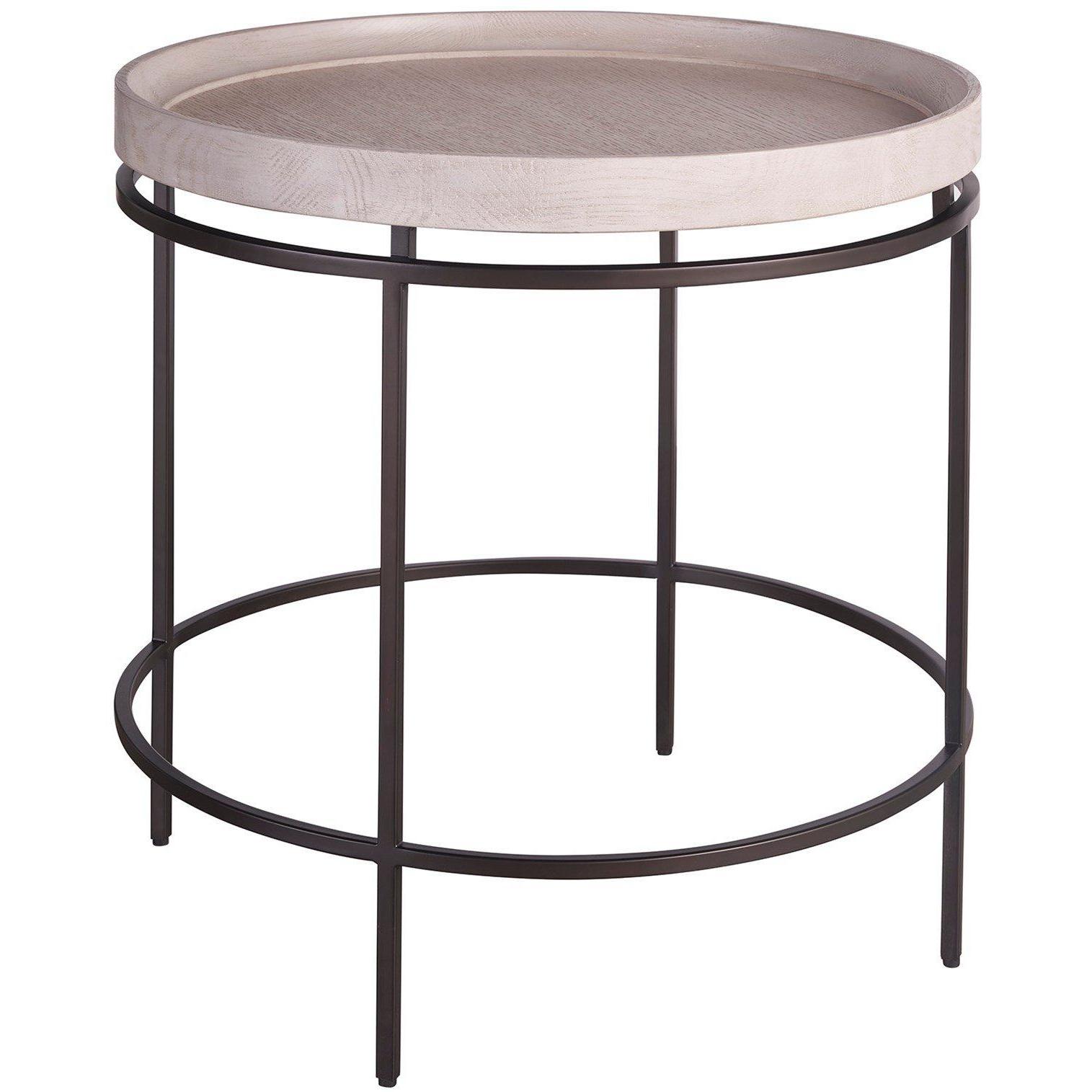 The Coalesce End Table, in a circular design, radiates elegance in a Rolling Fog finish, complemented by subtle metal hardware. This piece offers a timeless aesthetic that beautifully encapsulates the essence of modern luxury.