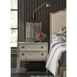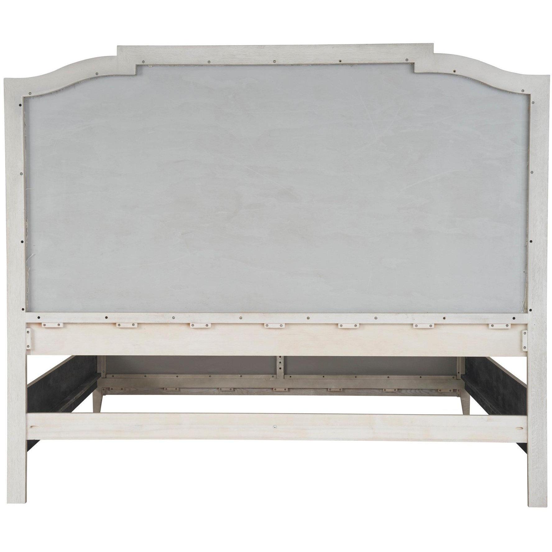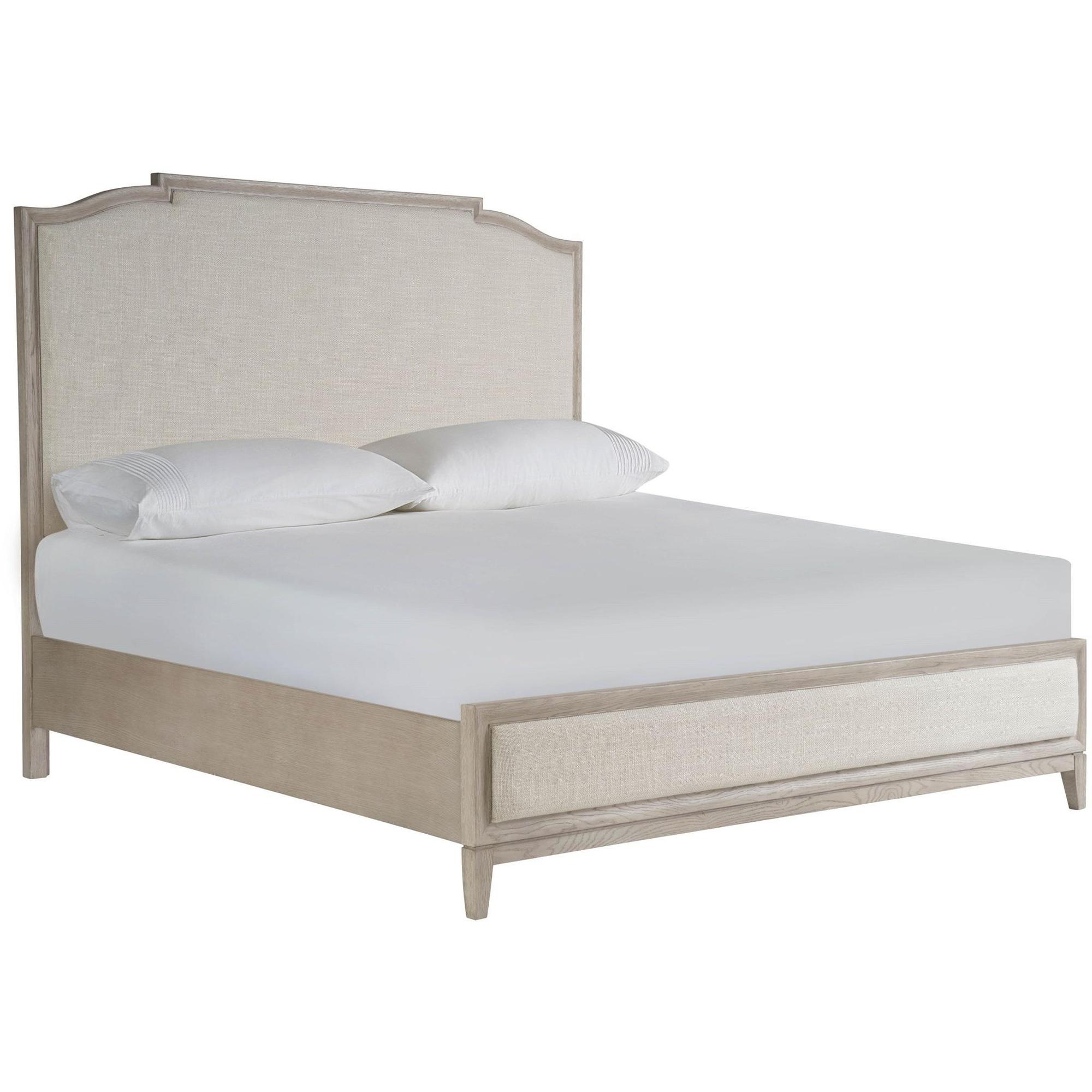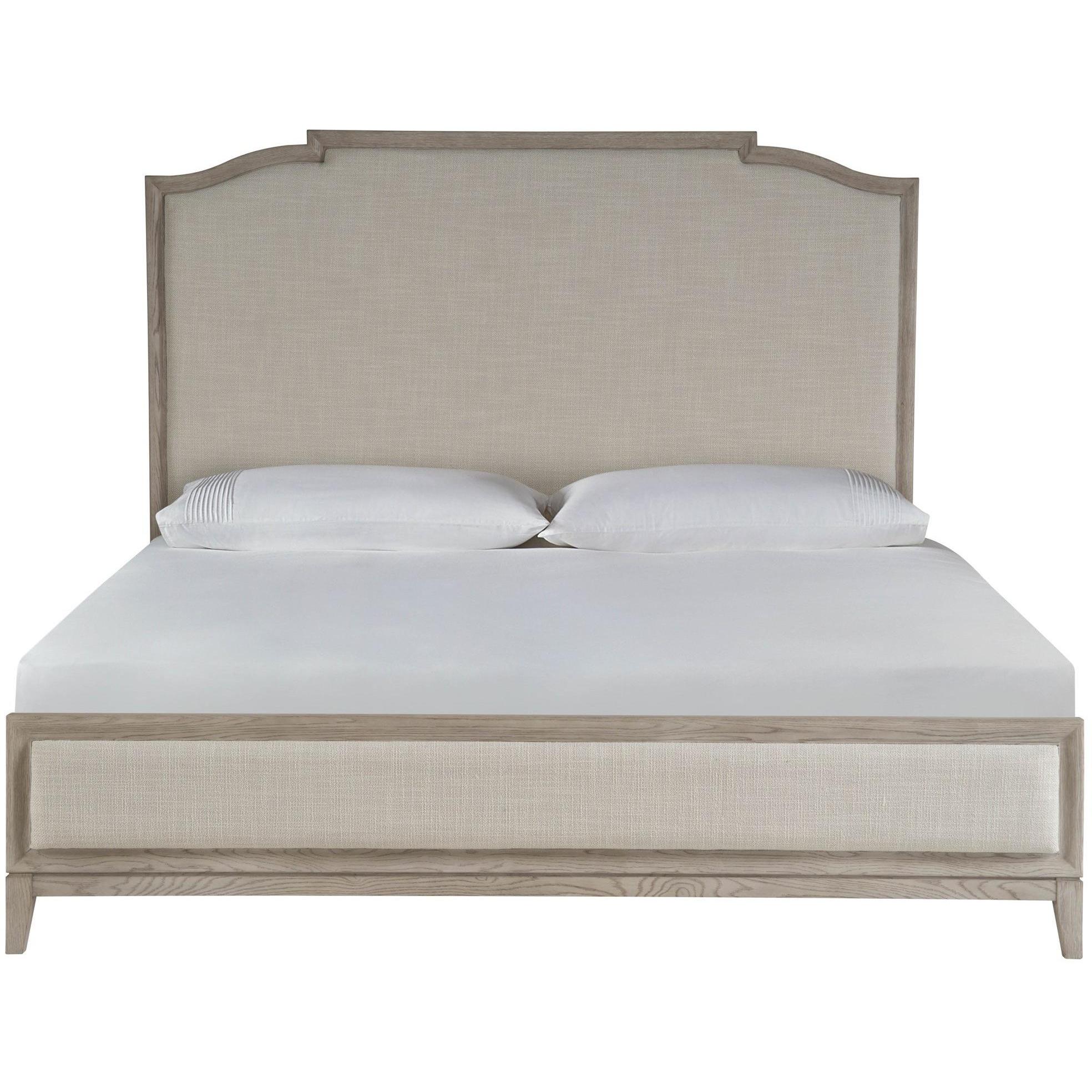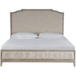 The Coalesce Panel Bed showcases a chic, slightly scalloped frame paired with plush upholstery, presenting a luxurious yet inviting centerpiece for the bedroom.