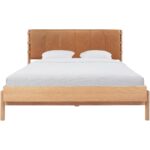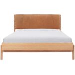 - 100% top-grain, aniline-dyed leather will age, lighten & soften with both use & time & develop a rich patina. Solid oak leg & headboard frame with oak veneer over MDF bed frame