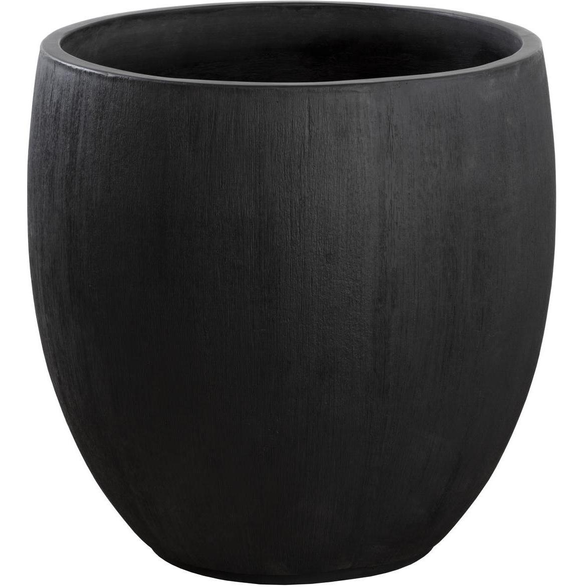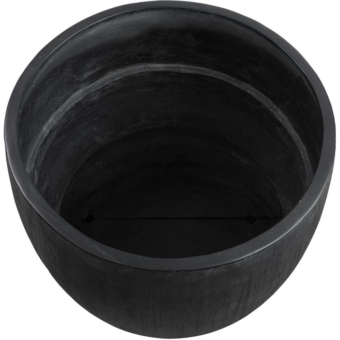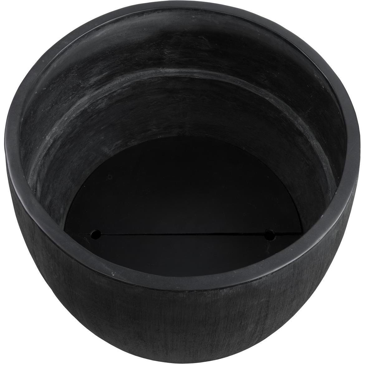 The contemporary form of the large round Coleus Planter allows for a lush display of botanicals that will complement any decor. Constructed from glass fibre-reinforced concrete for increased durability with a protective sealant finish that allows it to withstand the elements. Designed with a black finish with raised texture for added character, this beautiful planter will be a welcome addition to large spaces such as hotel lobbies or building entrances. Includes holes for drainage, two steps, and removable shelf inserts.