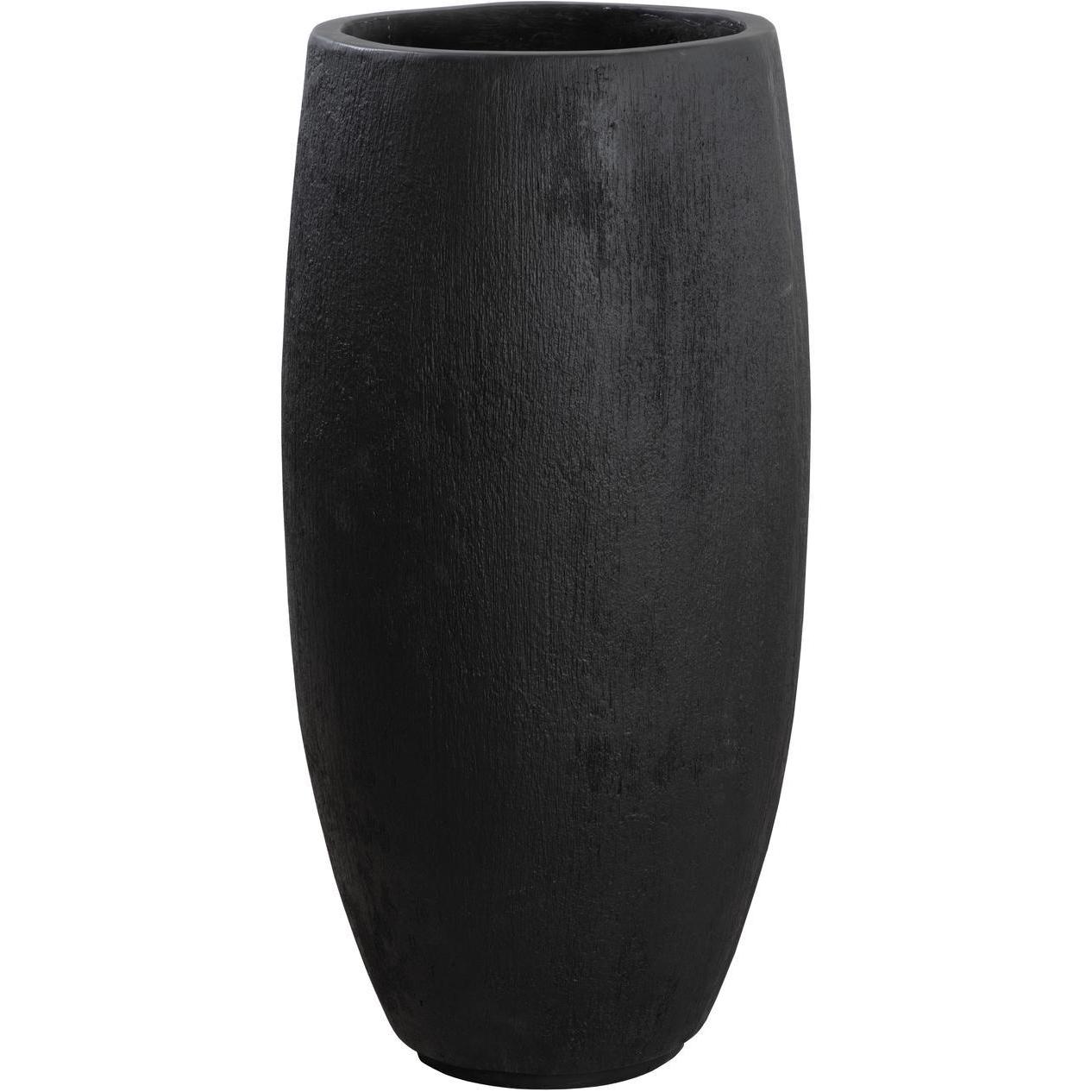 The contemporary form of the tall Coleus Planter allows for a lush display of botanicals that will complement any decor. Constructed from glass fibre-reinforced concrete for increased durability with a protective sealant finish that allows it to withstand the elements. Designed with a black finish with raised texture for added character, this beautiful planter will be a welcome addition to large spaces such as hotel lobbies or building entrances. Includes holes for drainage, two steps, and two removable shelf inserts.