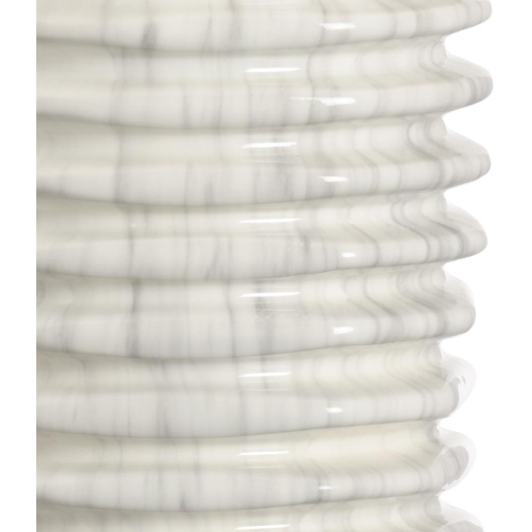 White marbalized glazed porcelain with clear acrylic base and polished nickel finished parts. Made in Italy.