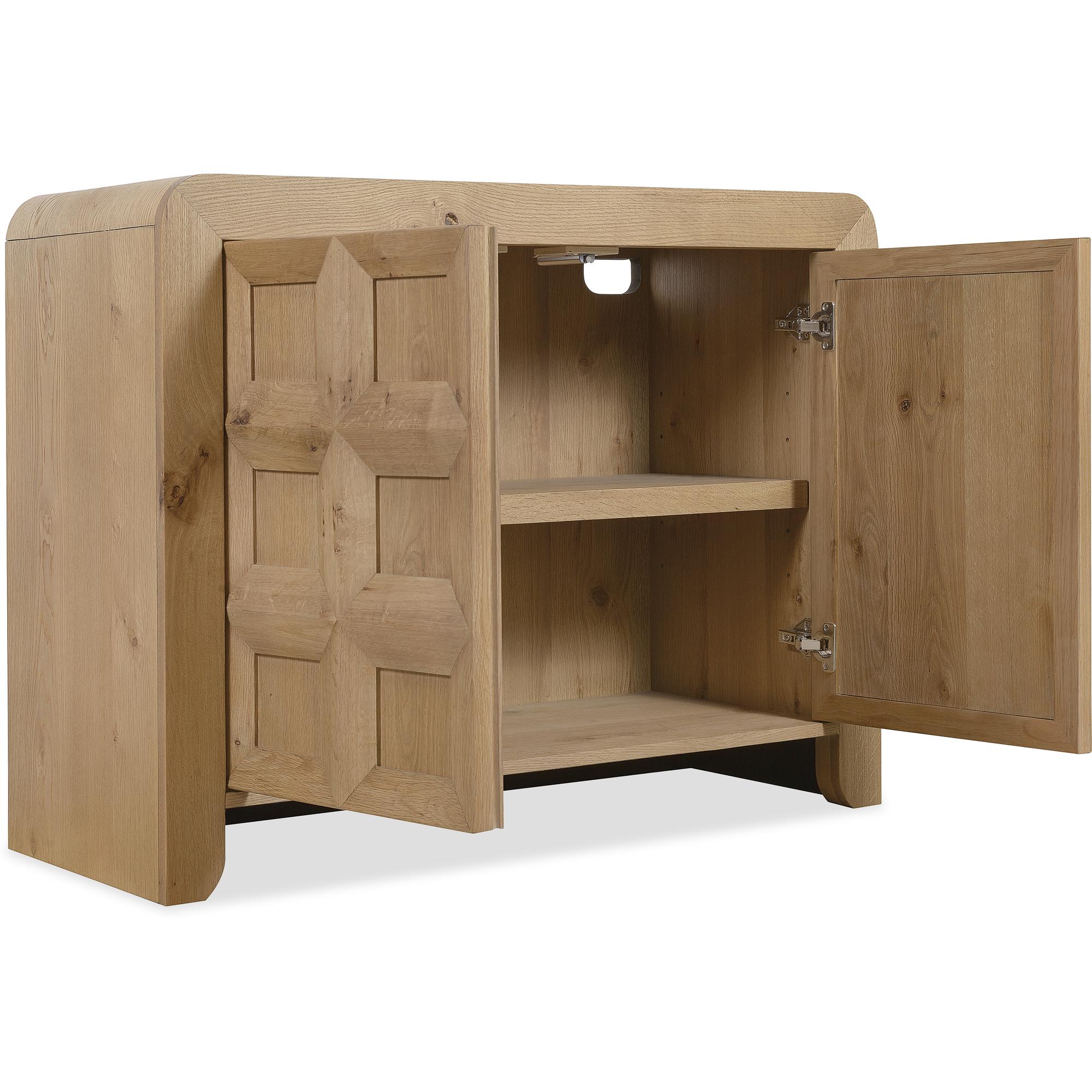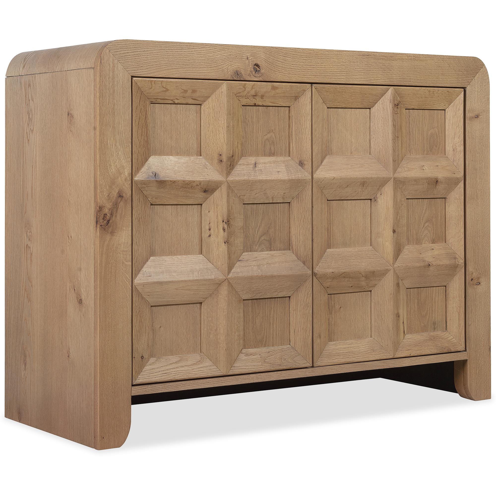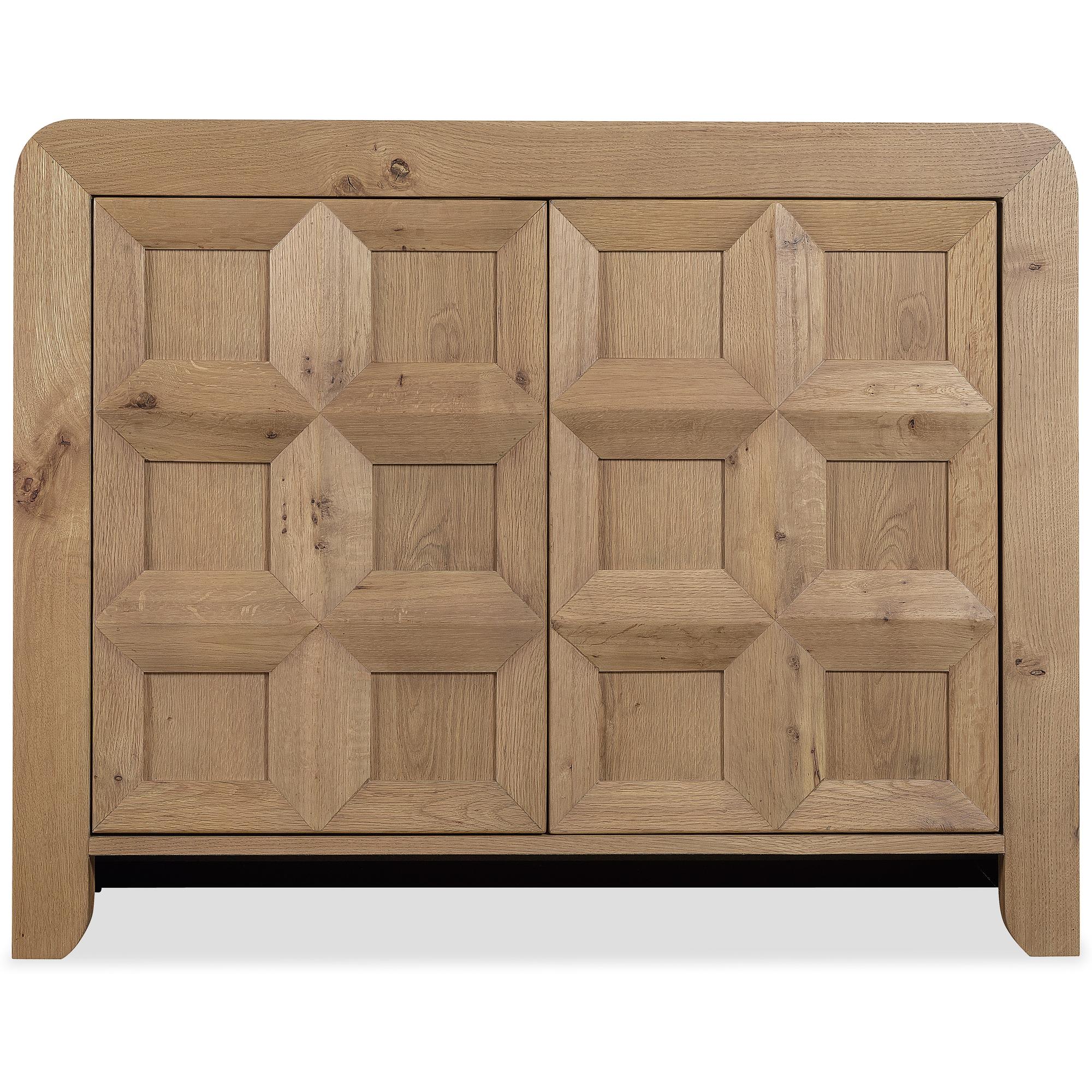 - Features: Two touch latch doors with faceted “window pane” door fronts